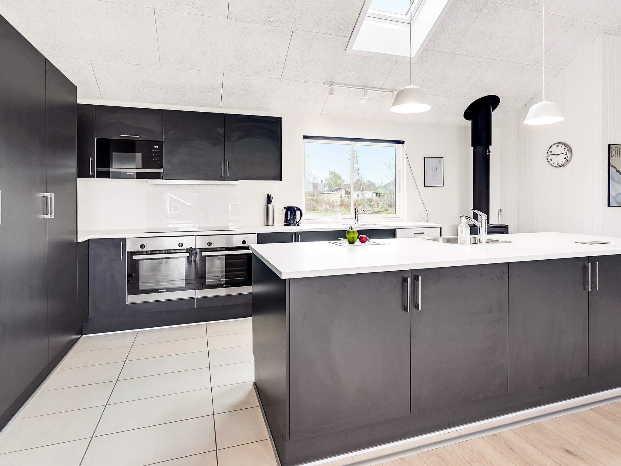 Køkkenet er praktisk indrettet med køkken-ø, og dobbelt opvaskemaskine, vask, ovn, køleskab og kogeplader, så det er nemt at kokkerere til alle feriens måltider.