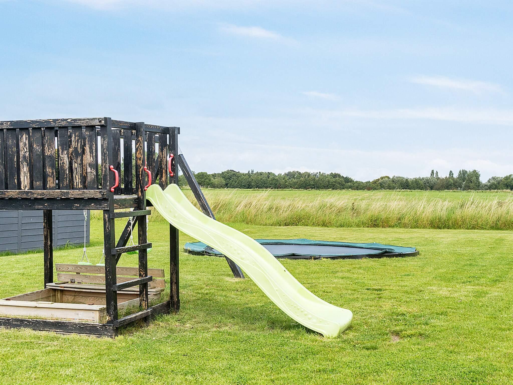 Skulle vejret lokke til udendørsaktiviteter er der både trampolin (brug af denne sker på lejers eget ansvar), legetårn og sandkasse.