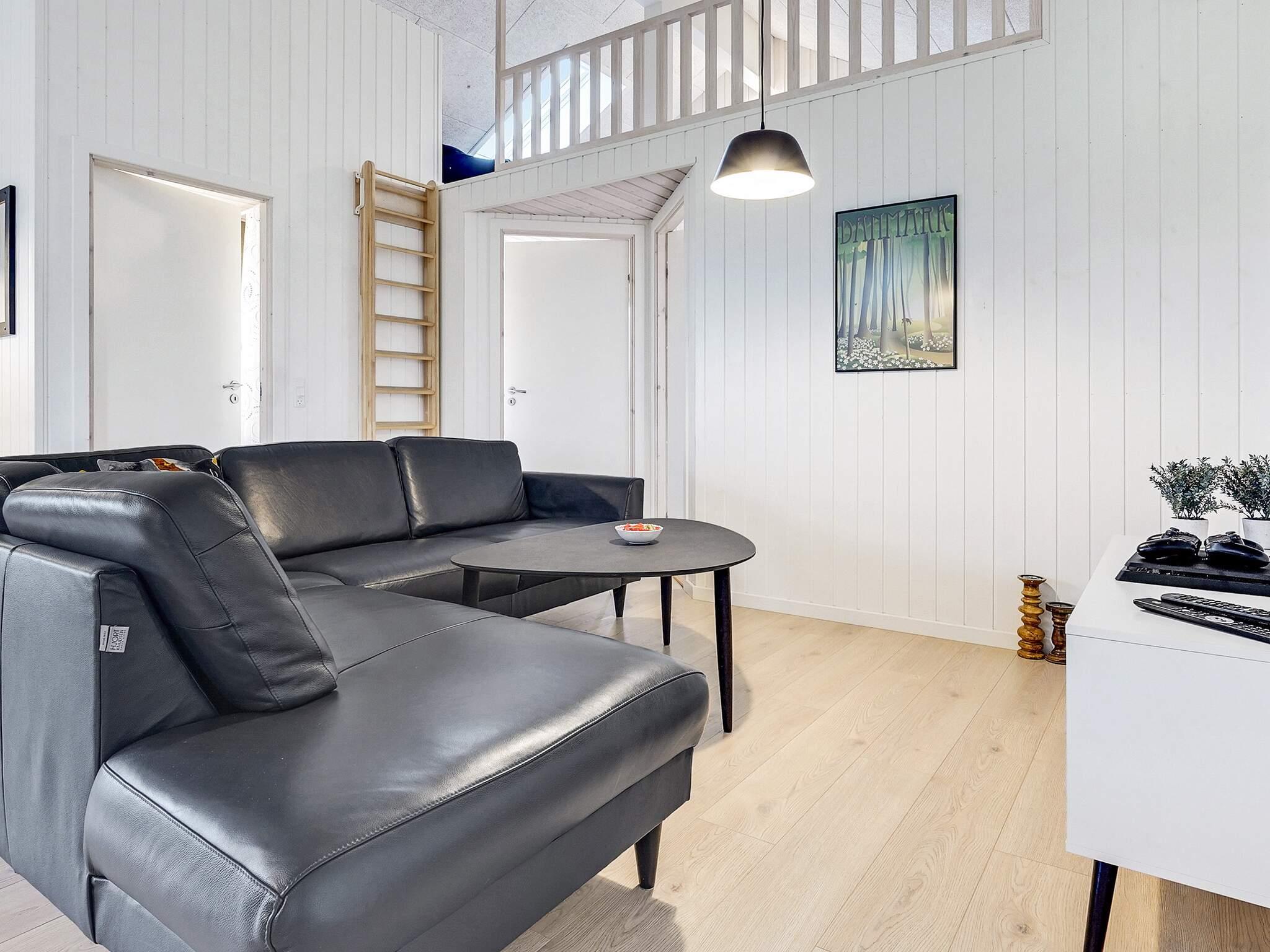 Det store opholdsrum, med udgang til terrassen, er husets naturlige samlingspunkt med sofagruppe, spisepladser og køkken.