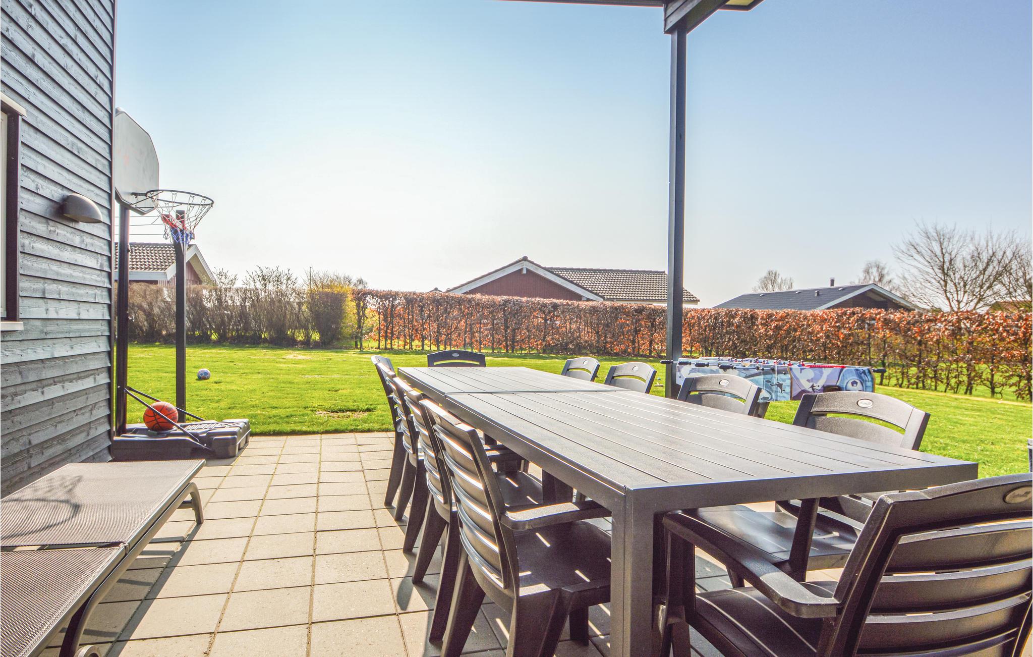 Dette skønne sommerhus ligger i et mindre ferieområde. Huset er opført i træ, af høj kvalitet og med energibesparende foranstaltninger, så det kan bruges til ferie året rundt. Det er moderne indrettet med komfortable møbler og har trådløst internet. Huset indeholder køkken i åben forbindelse til stuen kun adskilt af en halvmur, fire dejlige soveværelser, et stort badeværelse med brusekabine og spabad, fra badeværelset er der direkte adgang til saunaen, samt et mindre badeværelse med brusekabine. Huset ligger i en anlagt have der er omgivet af hæk med mange muligheder for udendørs leg, der er bl.a. andet kroketudstyr, basketballkurv og fodboldmål. I kan også bare slappe af på de behagelige havemøbler eller ligge på en solstol med en god bog. Den store terrasse er delvis overdækket. Der er gode vandremuligheder i naturen, I kan cykle langs kysten og i byerne Haderslev, Aabenraa og Kolding, der alle ligger indenfor en halv times køretur er der utallige butikker, cafeer, restauranter, seværdigheder mv. I kan forkæle børnene med en tur i enten Legoland, LEGO House, Givskud Zoo - Zootopia og Universe på Als, det hele ligger ca. en time i bil fra huset.