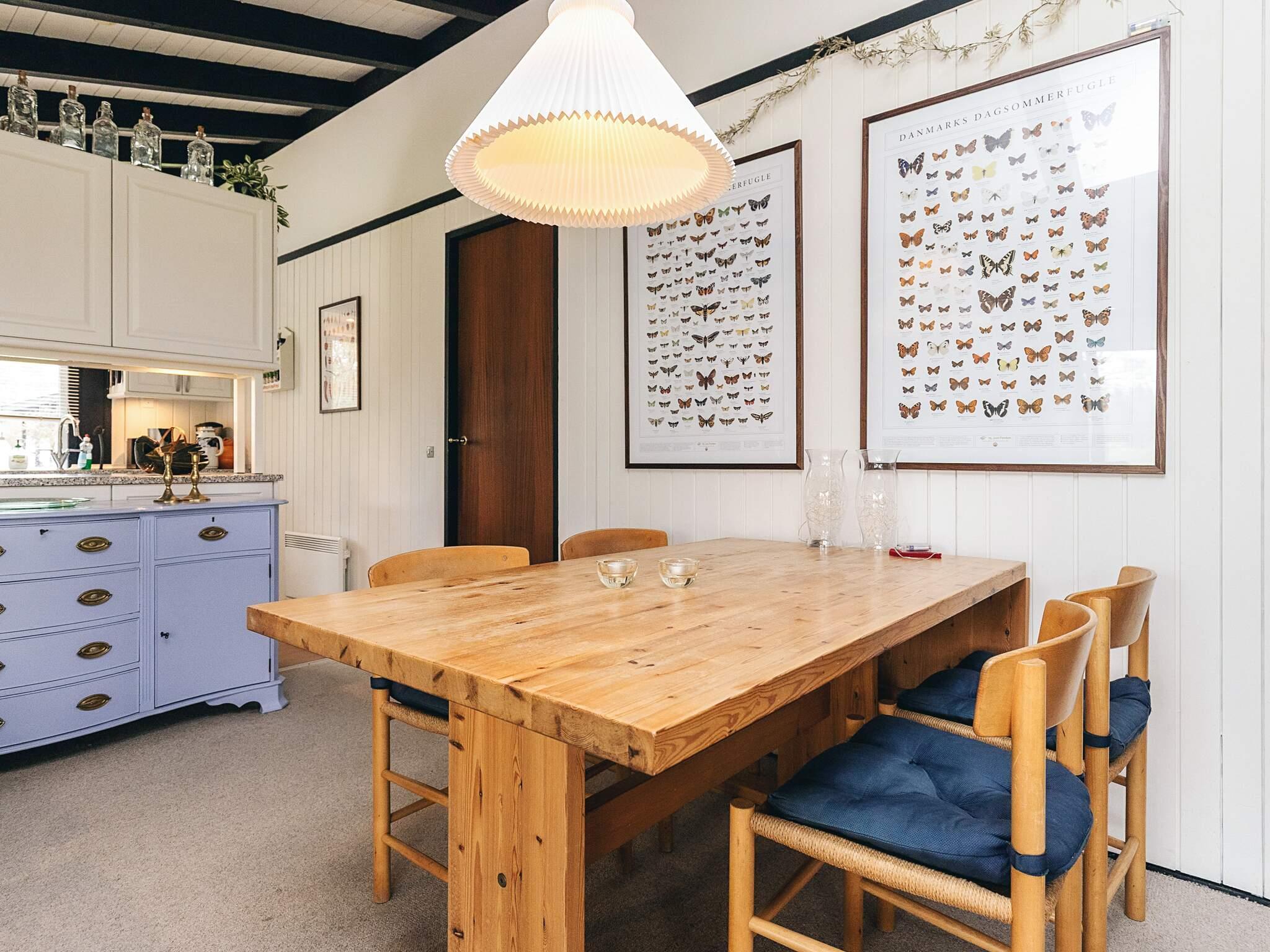 Indenfor finder du en lys og indbydende stue og køkken i åbent plan, komplet med en brændeovn, der skaber en varm og hyggelig atmosfære på køligere dage. En moderne luft-til-luft varmepumpe sikrer komfort året rundt, mens TV og Wi-Fi gør det nemt at holde forbindelsen og underholde. Køkkenet er veludstyret med alt det nødvendige til familiens måltider, herunder en keramisk kogeplade, ovn, køleskab med fryser og opvaskemaskine. Hjemmet byder på tre soveværelser: to med dobbeltsenge og et tredje med to enkeltsenge, hvilket gør det til en behagelig opsætning for familier eller små grupper. Badeværelset er udstyret med bruser, gulvvarme og vaskemaskine for ekstra bekvemmelighed under længere ophold.
