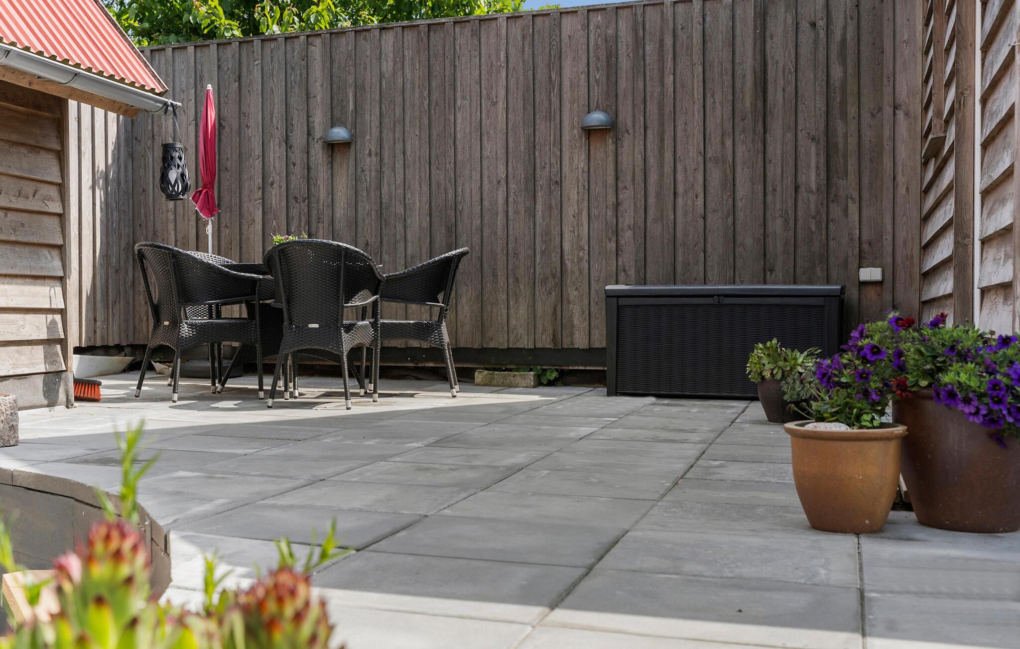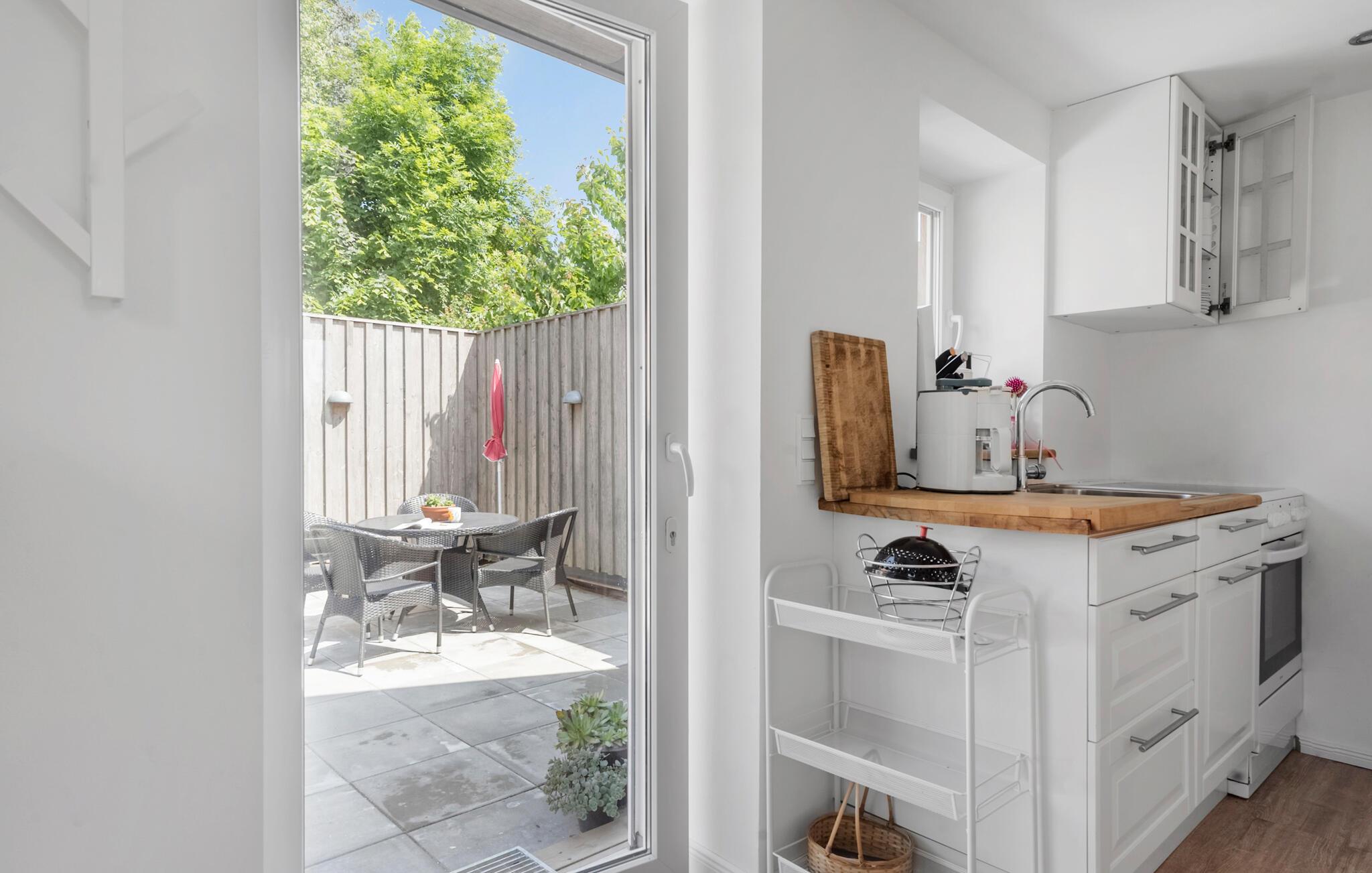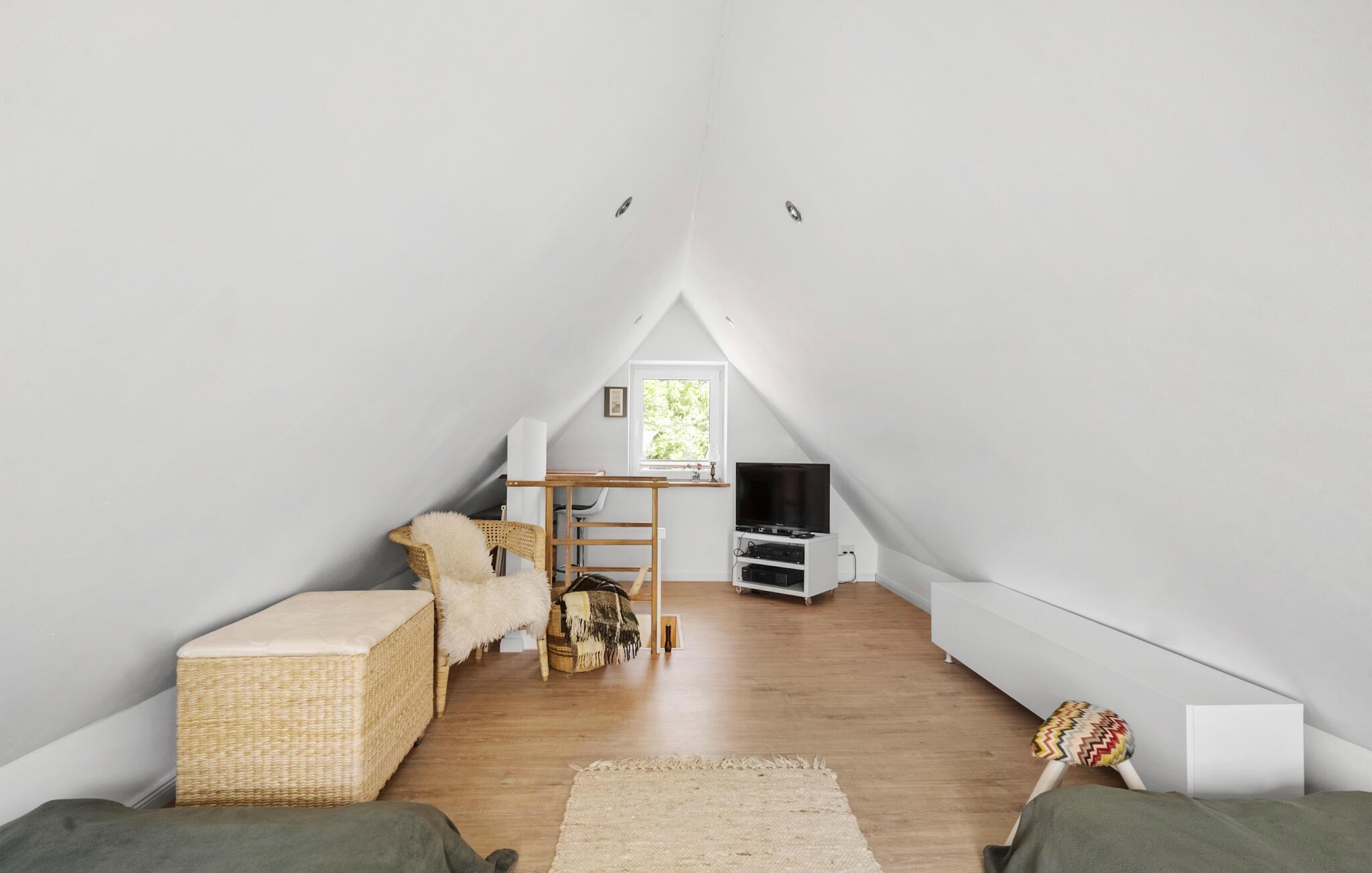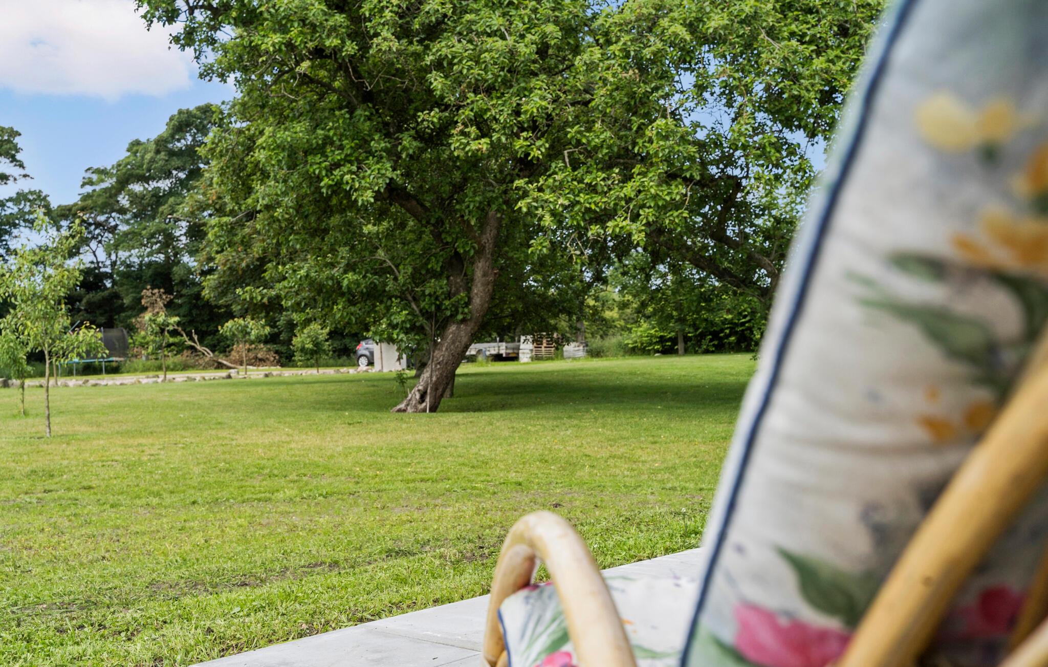 Brug den overdækkede terrasse til udendørs måltider eller begynd dagene med en kop kaffe og udsigt over det omkringliggende landskab. Den store have lægger op til at lege, slappe af og grille. Der er en gynge til børnene, og til hyggelige aftener er et bålsted perfekt til at bage snobrød i godt selskab.