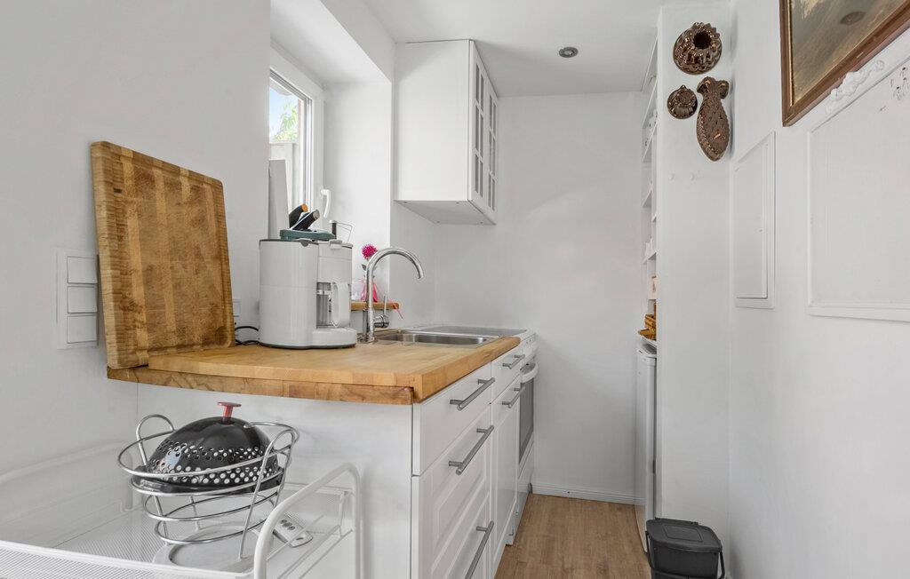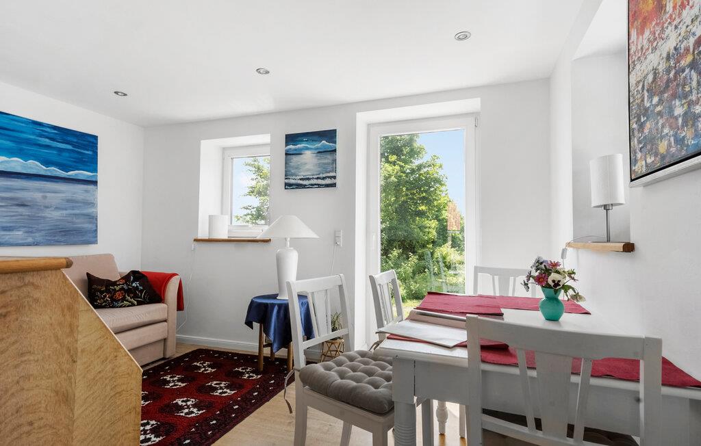 Sæt hverdagen på pause og nyd nogle afslappende dage i landlige omgivelser. Dette velindrettede feriehus giver jer de optimale betingelser for en fredfyldt ferie. I vil straks føle jer hjemme i husets hyggelige stemning. Indretningen kombinerer lyse farver med personlige detaljer. I stueetagen finder I en opholdsstue med sofa, en lille spiseplads med adgang til haven og et kompakt køkken. I kan også nyde afslappende timer i saunaen.