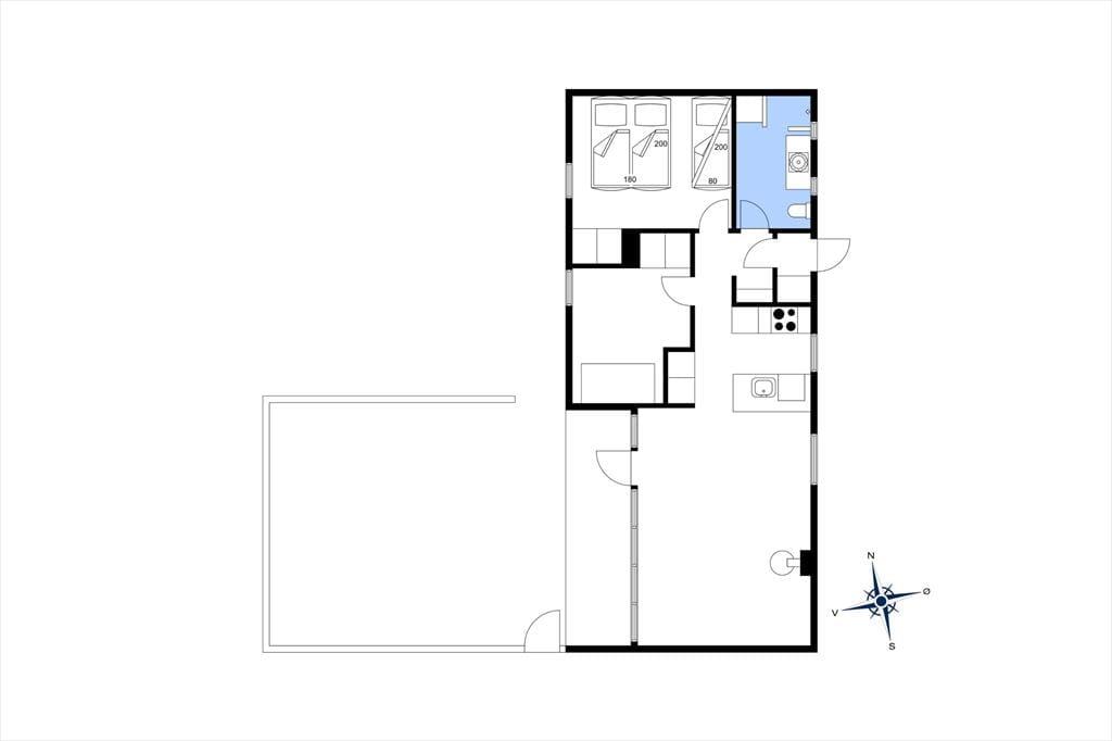 Sommerhuset har en attraktiv placering i 200-byen, for det ligger helt for enden af vejen og lige ud til det åbne landskab. Fra den rolige bebyggelse kan du følge stierne ud i den smukke natur, og der er bare 250 meter at gå, hvis det er Rødhus Strand og Vesterhavet, der trækker. En gåtur langs med kysten er flot i al slags vejr, og hvis du bliver fristet til at springe i bølgerne, kan du bagefter slænge dig på et tæppe i sandet – det er lige sådan, en rigtig strandferie skal være. Vil du nyde naturen på mere aktiv vis, får du rig mulighed for at cykle og vandre, blandt andet i Blokhus Klitplantage, der breder sig lidt længere mod nord på vejen mod badebyen Blokhus.