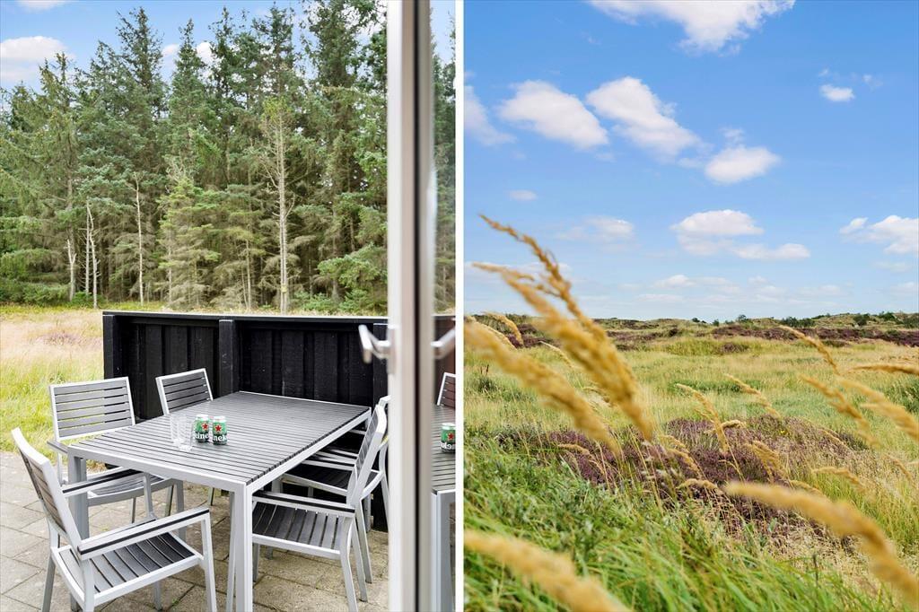 Sommerhuset ligger på en stor, ugeneret naturgrund, der indbyder til ro og afslapning. Med skøn klithede som naturlig indramning kan du her finde den helt perfekte plet at slå dig ned og lade freden sænke sig. Den store terrasse er ideel til at nyde de lange sommeraftener med en god bog eller et glas vin, mens du lytter til naturens lyde omkring dig. Om aftenen kan du tænde op i grillen og tilberede et lækkert måltid, mens du ser solen gå ned over den idylliske naturgrund. Det er ren sommeridyl!