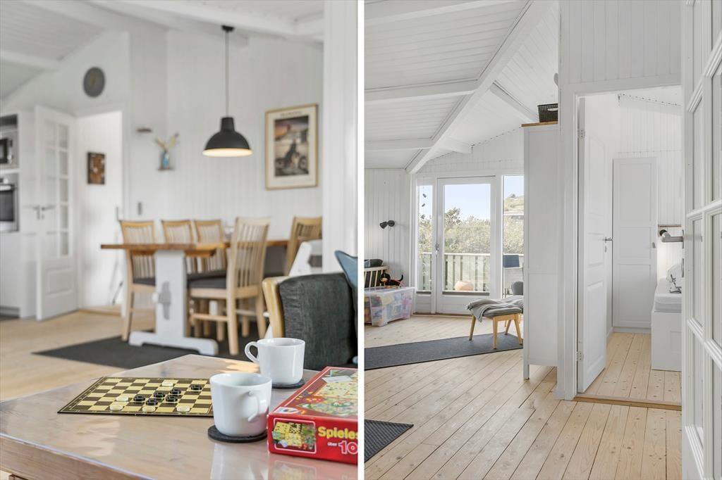 Det klassiske træsommerhus på 74 m2 er senest blevet renoveret i 2022, så det fremstår pænt og velholdt. I har blandt andet et godt og moderne køkken at kokkerere i med opvaskemaskine og ovn i ståhøjde, og det er smart integreret med stuen, så I kan hyggesnakke eller følge med i børnenes leg, selvom der skal røres i gryderne. I stuen står en dejlig brændeovn, og der er også varmepumpe med køl, radio med bluetooth og fladskærms-tv med Chromecast, der gør ferielivet ekstra rart. Sommerhusets badeværelse er lyst og velindrettet, og det samme er de tre soveværelser, hvoraf et er udstyret med dobbeltseng og de to andre med komfortable sovesofaer.