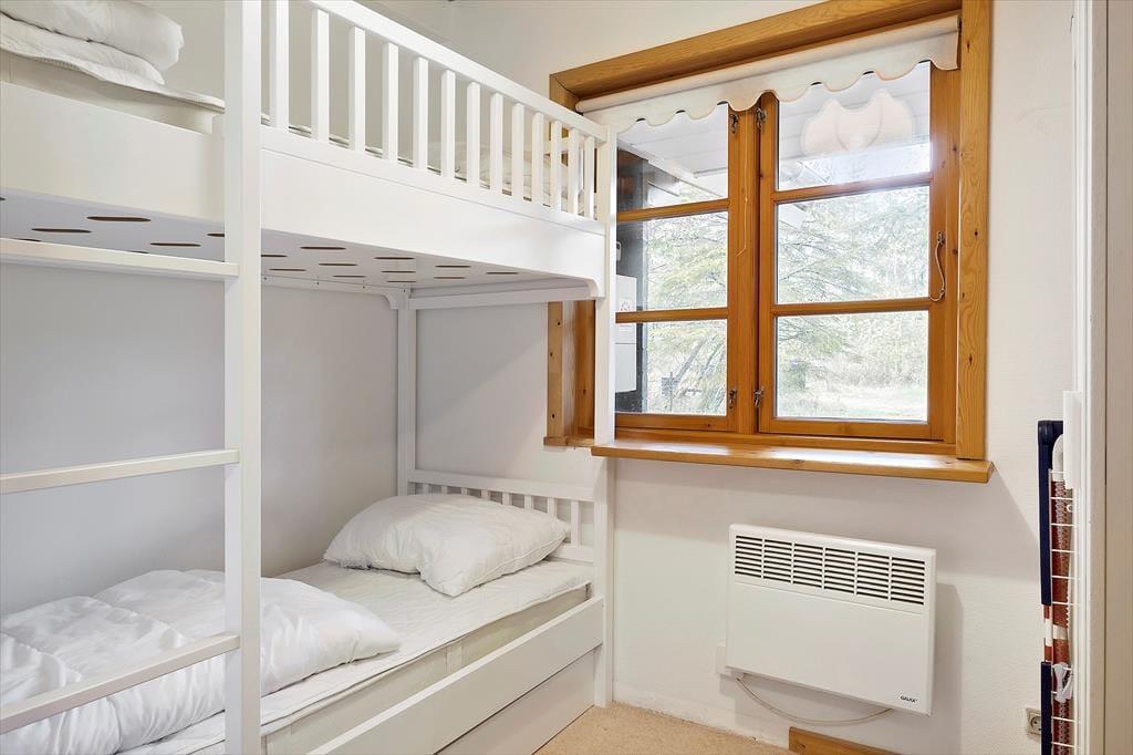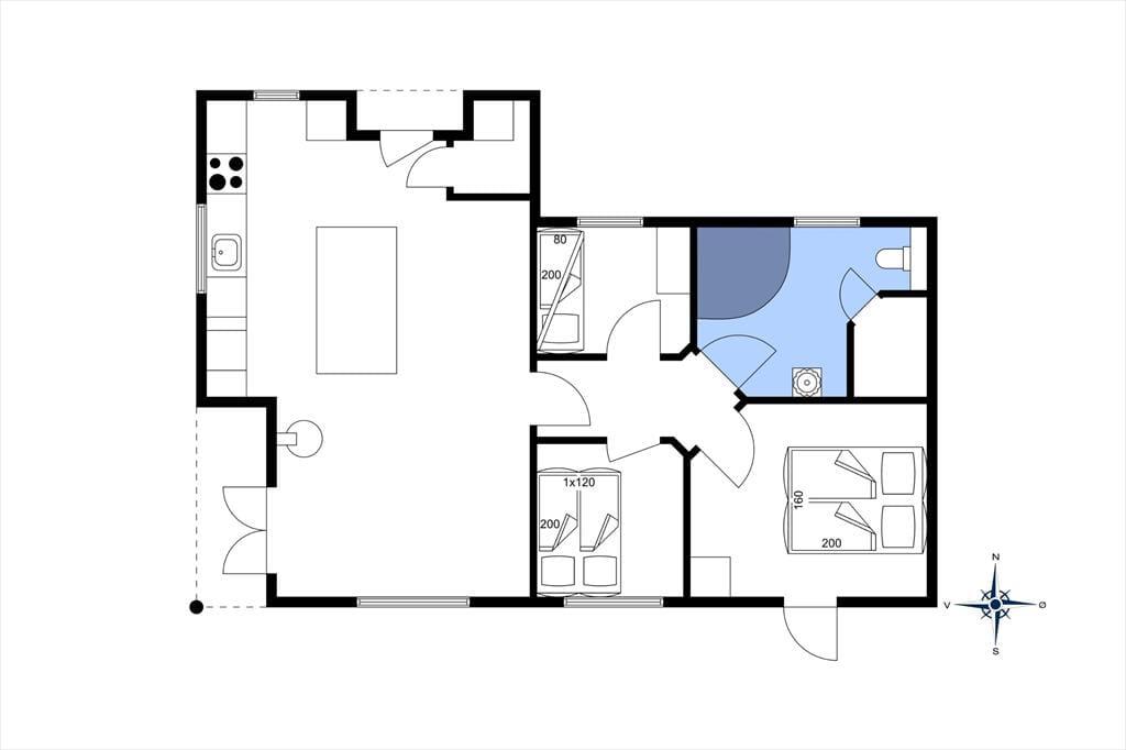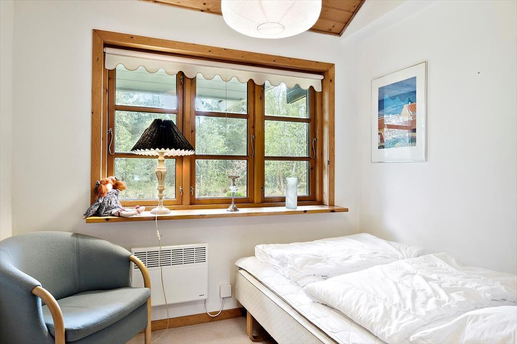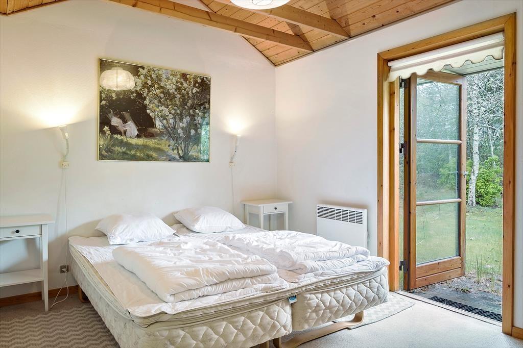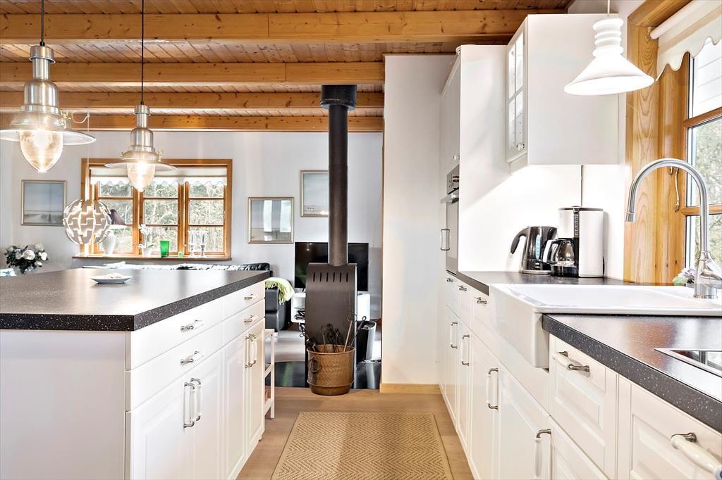 Sommerhuset er opført i 2001, måler 84 m2 og har en glimrende planløsning til seks personer. To soveværelser er begge indrettet med dobbeltseng, mens det tredje har køjeseng, og på badeværelset er der ikke bare gulvvarme og bruser, men også spabad og sauna. Er målet med ferien at komme helt ned i tempo, kan I med andre ord forkæle jer selv med en wellness-stund i ny og næ. Det er også ren velvære at slappe af i stuen, som er udstyret med brændeovn, komfortable møbler og tv med parabol – og hvis I kan lide at lave mad, kan I glæde jer til at kokkerere i det åbne køkken, som er indrettet med ovn i arbejdshøjde, opvaskemaskine og mange andre gode detaljer.