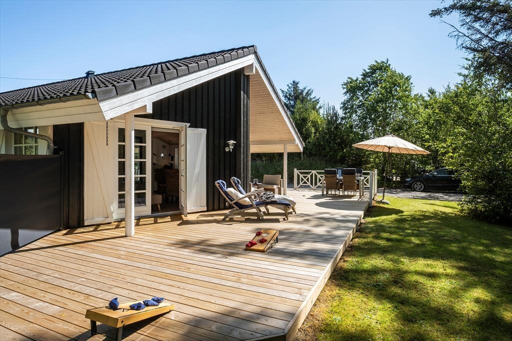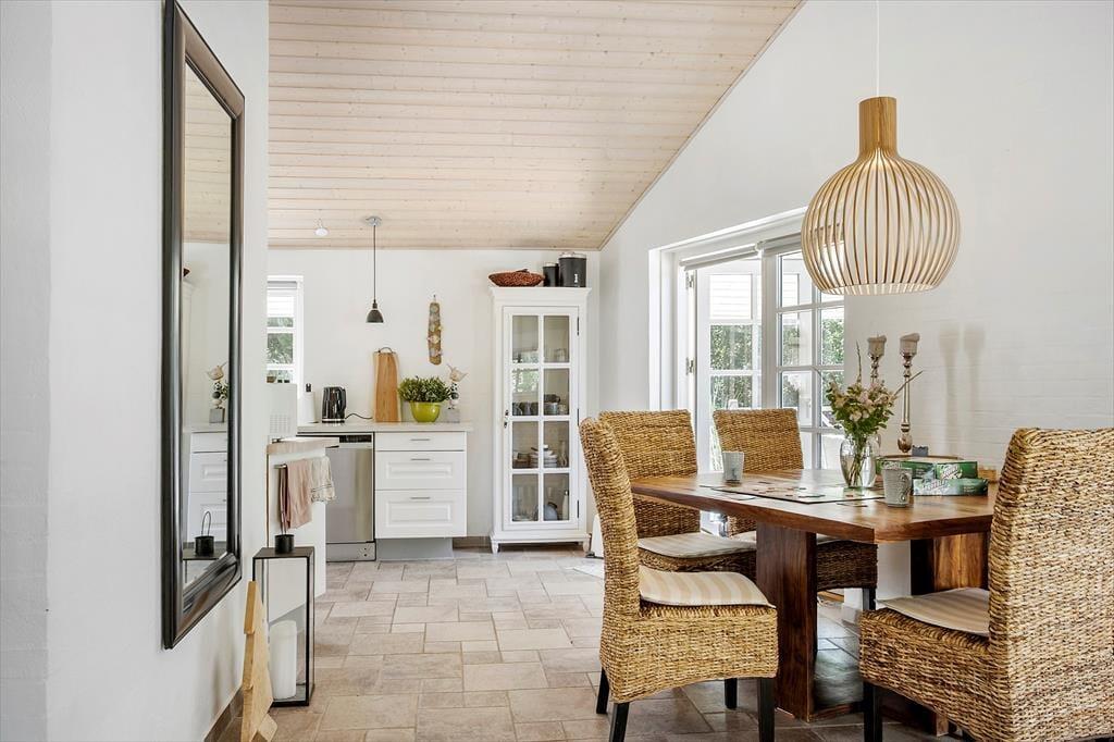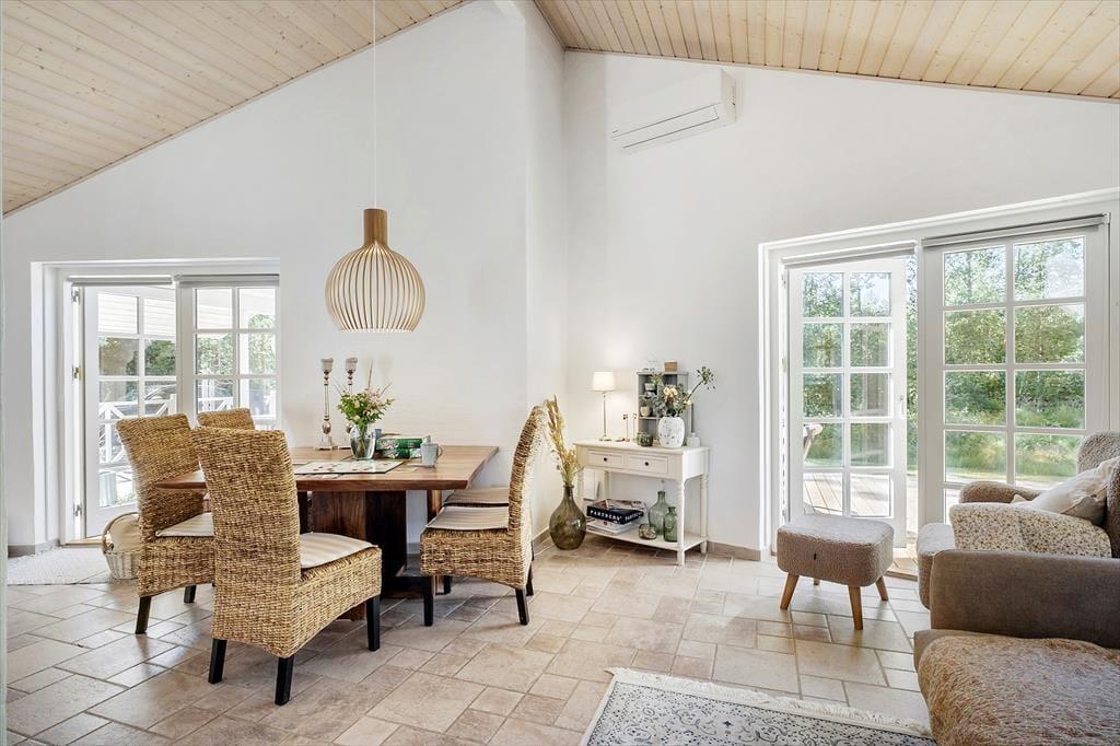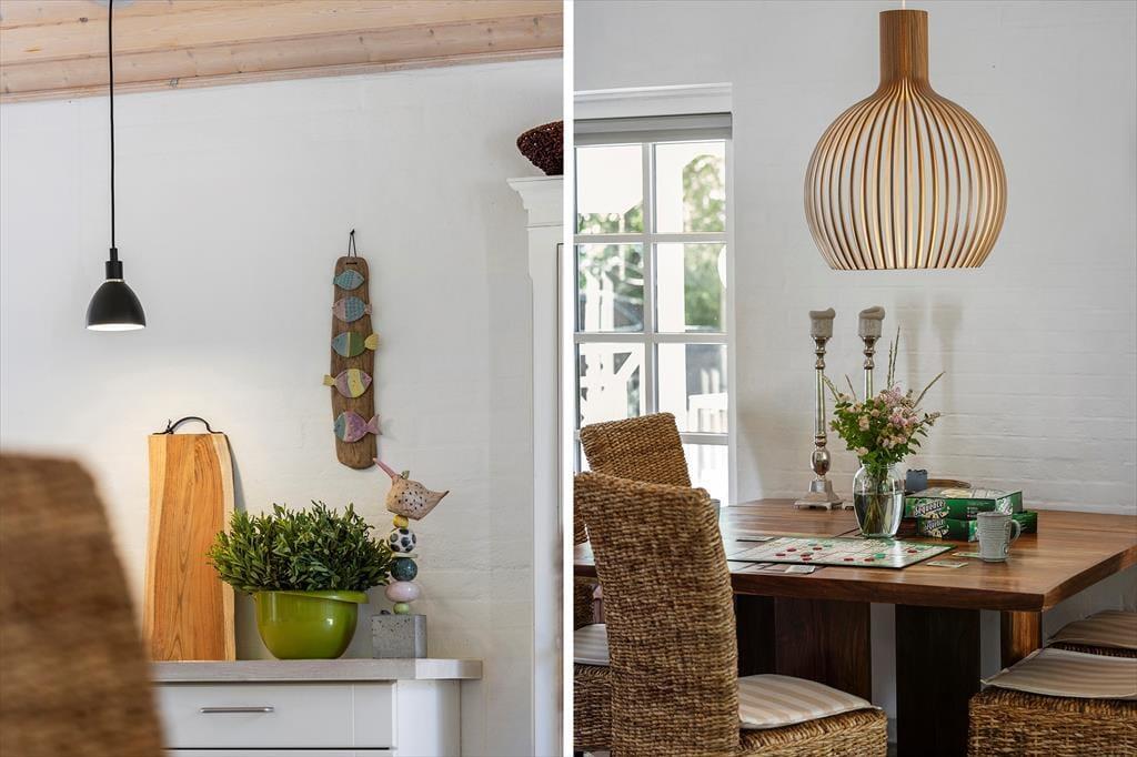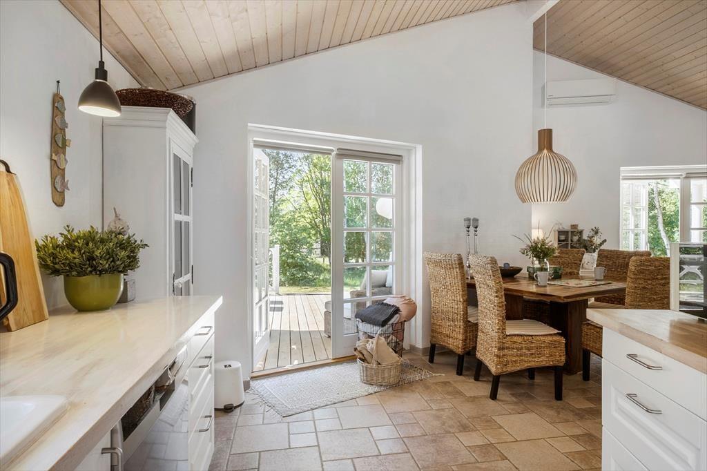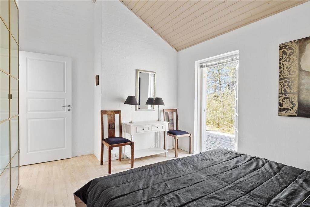 Vi er stolte over at formidle udlejningen af dette pragtfulde sommerhus, som helt sikkert vil danne rammen om mange vellykkede ferier, og som kan bruges året rundt. Med tre værelser og to badeværelser kan huset både bruges til ophold for familier eller par, der gerne vil tilbringe lidt kvalitetstid sammen. Den smukke og gennemførte indretning er holdt i lyse og hvide toner, og med det smukke nordjyske lys strømmende ind ad de store vinduer og ild i brændeovnen er hyggen altid til stede. Huset råder over to badeværelser, hvoraf det ene er med badekar og tre gode soverum. De to med dobbeltseng og det tredje med enkeltsenge Der er entre og det er her i finder både vaskemaskine og tørretumbler. Herfra er der adgang til husets køkken der er i åben vinkel med stuen. Fra stuen er der via flere terrassedøre udgang til husets terrasser. Huset har naturligvis frit internet, så medbring blot tablet eller PC på ferien og man kan hele tiden holde sig orienteret om oplevelser i det nordjyske. Et pragtfuld hus der oser af hygge og charme. Og elegant stil.