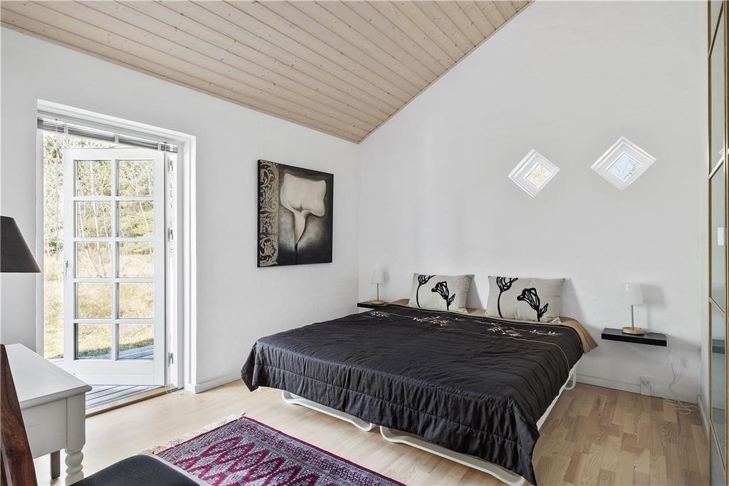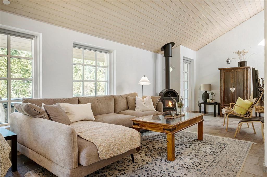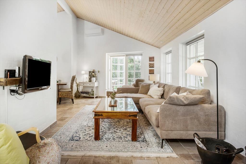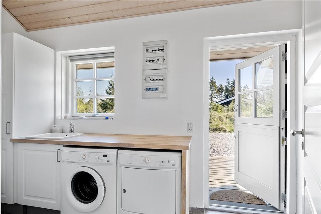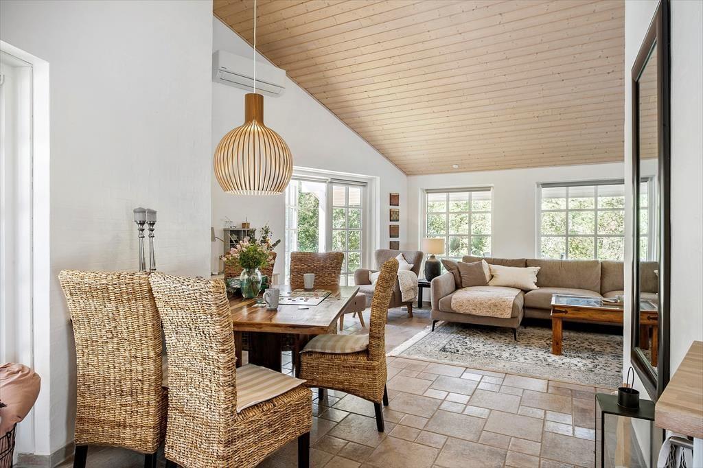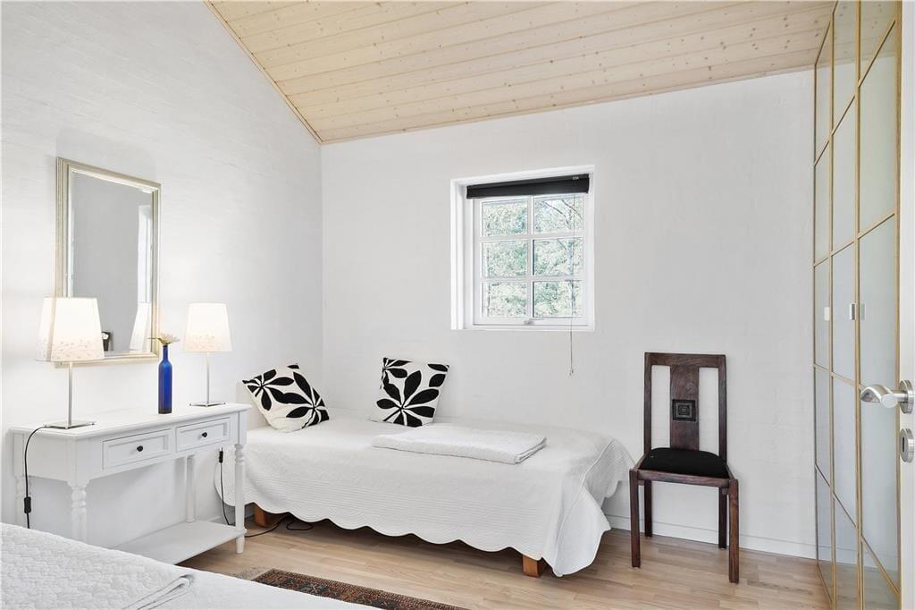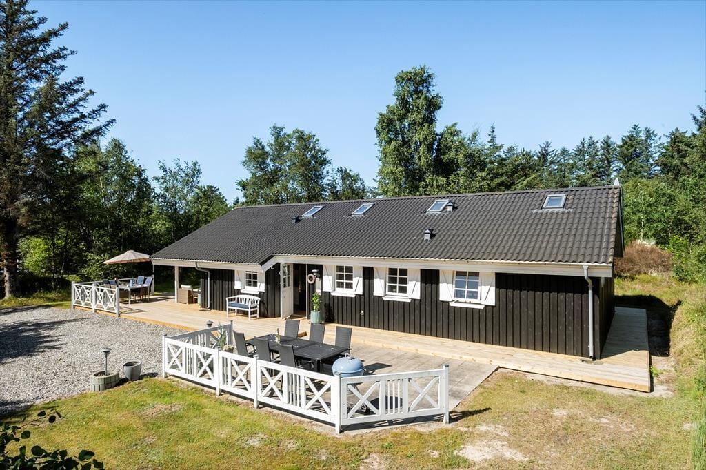 Vi er stolte over at formidle udlejningen af dette pragtfulde sommerhus, som helt sikkert vil danne rammen om mange vellykkede ferier, og som kan bruges året rundt. Med tre værelser og to badeværelser kan huset både bruges til ophold for familier eller par, der gerne vil tilbringe lidt kvalitetstid sammen. Den smukke og gennemførte indretning er holdt i lyse og hvide toner, og med det smukke nordjyske lys strømmende ind ad de store vinduer og ild i brændeovnen er hyggen altid til stede. Huset råder over to badeværelser, hvoraf det ene er med badekar og tre gode soverum. De to med dobbeltseng og det tredje med enkeltsenge Der er entre og det er her i finder både vaskemaskine og tørretumbler. Herfra er der adgang til husets køkken der er i åben vinkel med stuen. Fra stuen er der via flere terrassedøre udgang til husets terrasser. Huset har naturligvis frit internet, så medbring blot tablet eller PC på ferien og man kan hele tiden holde sig orienteret om oplevelser i det nordjyske. Et pragtfuld hus der oser af hygge og charme. Og elegant stil.
