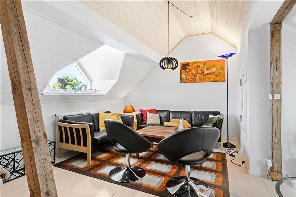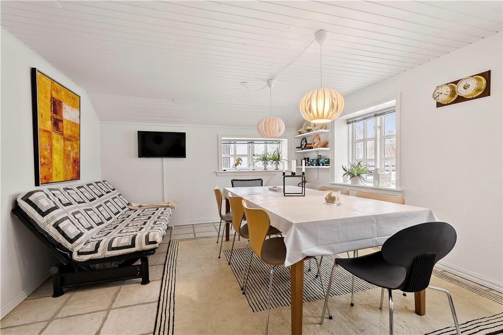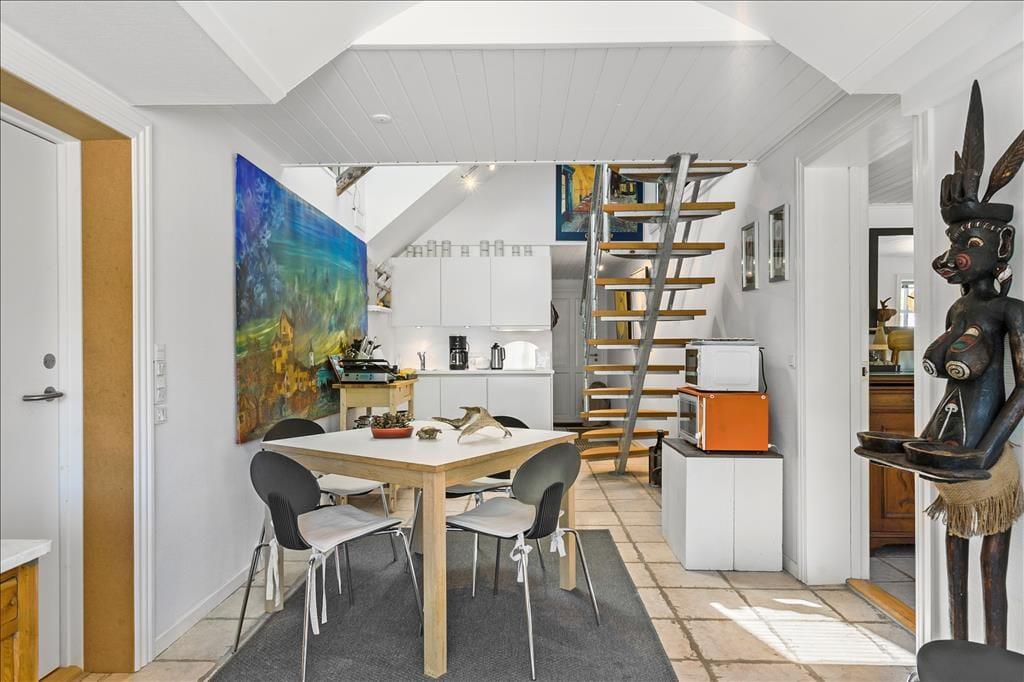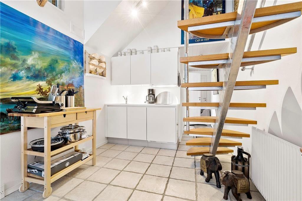 Selve ferielejligheden måler 135 m2 fordelt på to plan, så også inden døre er der masser af plads til at folde ferielivet ud. Gården er cirka et århundrede gammelt, men takket være en grundig modernisering i 2015 fremstår lejligheden særdeles lys og indbydende. I finder alt, hvad I skal bruge i ferieboligen, inklusiv et lækkert badeværelse og et lille, men funktionelt køkken, der ligger som del af den åbne opholdsafdeling, der pryder både stueplan og førstesalen. Der er mange gode hyggekroge at vælge imellem, når I vil slappe af efter en dag fuld af udflugter og naturoplevelser, og når det er sengetid, er seks sovepladser fordelt både oppe og nede.