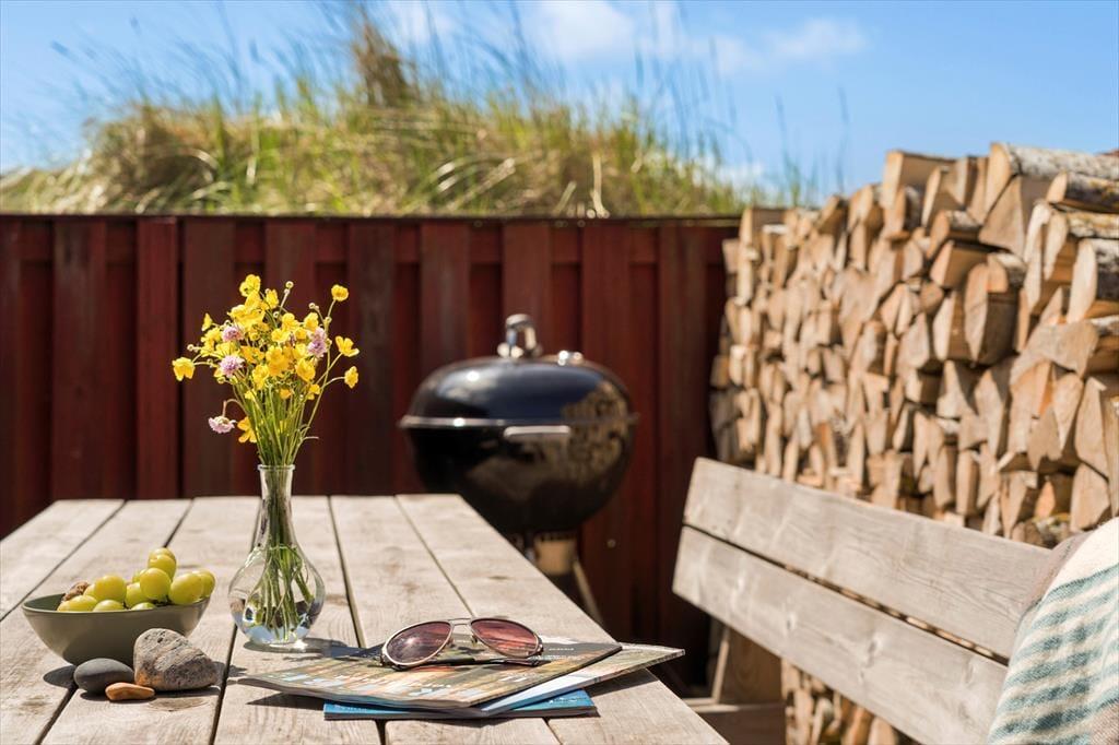 Når solen titter frem, og luften er lun, er det udenfor, feriestemningen for alvor blomstrer. Den store grund er fuld af fred og ro, og der er rig mulighed for at nyde stilheden med fuglesang i baggrunden og udsigt til de grønne omgivelser. Terrassen inviterer til afslapning i havestolen med en kold drik, og når aftenen nærmer sig, kan I tænde op i grillen og samles til et måltid under åben himmel.