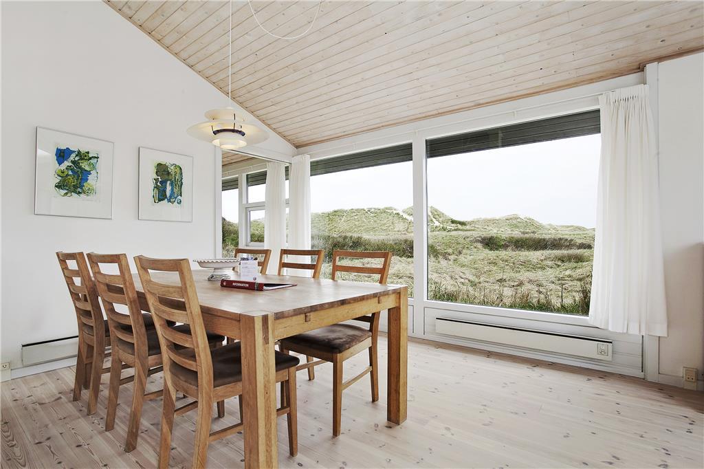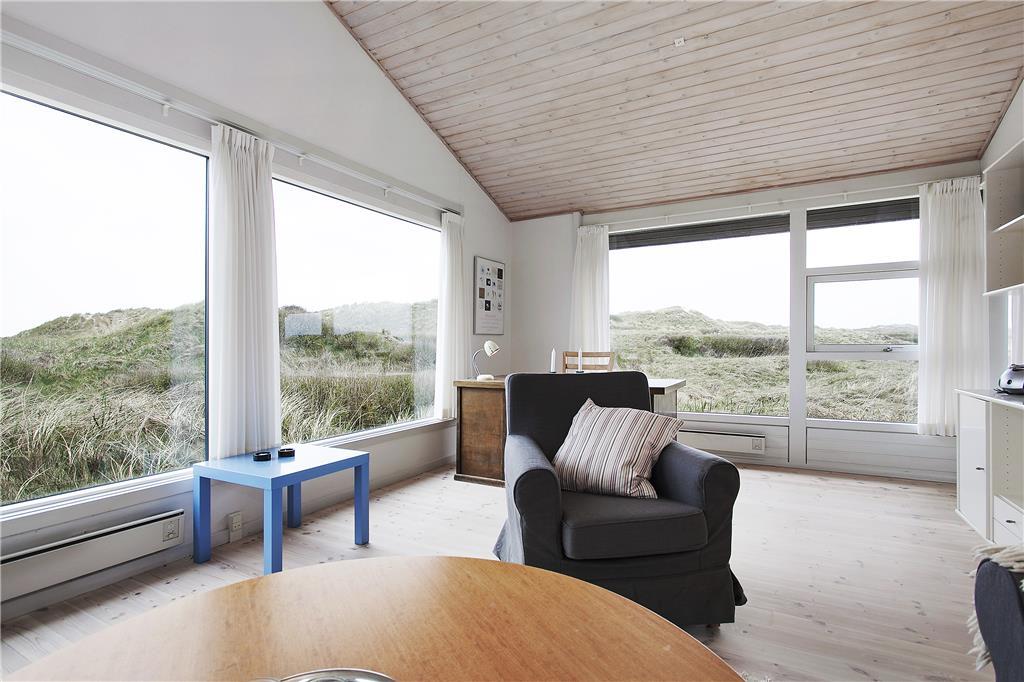 Fra den store grunds høje klitter er der en flot havudsigt, og området er rigt på fugle- og dyreliv. Huset er derfor et oplagt valg for naturelskere. Fra den store træterrasse, som vender mod syd, har man en helt betagende udsigt over det vilde og barske klitlandskab. Få skridt bringer jer ned til Vesterhavets bølger, hvor I kan nyde en hurtig dukkert. Leder man efter et hus i første klitrække ved havet, så bliver det ikke meget bedre.