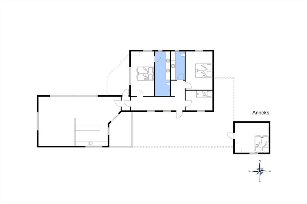 Såfremt I søger noget helt specielt, så er dette sommerhus det helt rigtige alternativ. Sommerhuset er opført i træ med store rum og med et fantastisk flot græstag, der er kendetegnende for mange af husene i dette område. Huset er lyst og moderne indrettet og udstråler overalt hygge og feriestemning. 3 gode soveværelser i hovedhuset samt 2 sovepladser i husets anneks. 2 badeværelser, hvoraf det store badeværelse har en direkte adgang fra husets største soveværelse. Hovedhuset er opført i 2 sektioner knyttet sammen af en lille gang. Denne opbygning betyder, at man i modsætning til mange andre huse har mulighed for at opholde sig i stuerne uden risiko for at forstyrre dem der opholder sig i værelserne. Grundet husets beliggenhed og enestående nærhed til Veterhavet, så skal man være i god til hvis man ønsker at leje huset i en bestemt periode.
