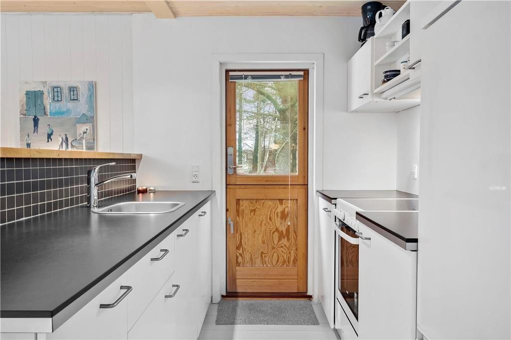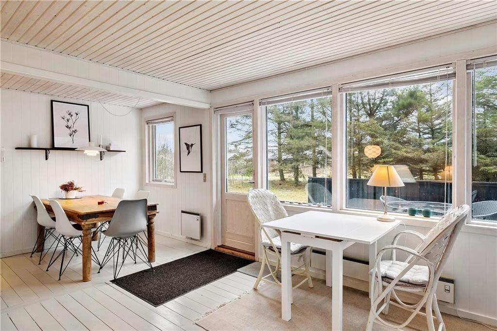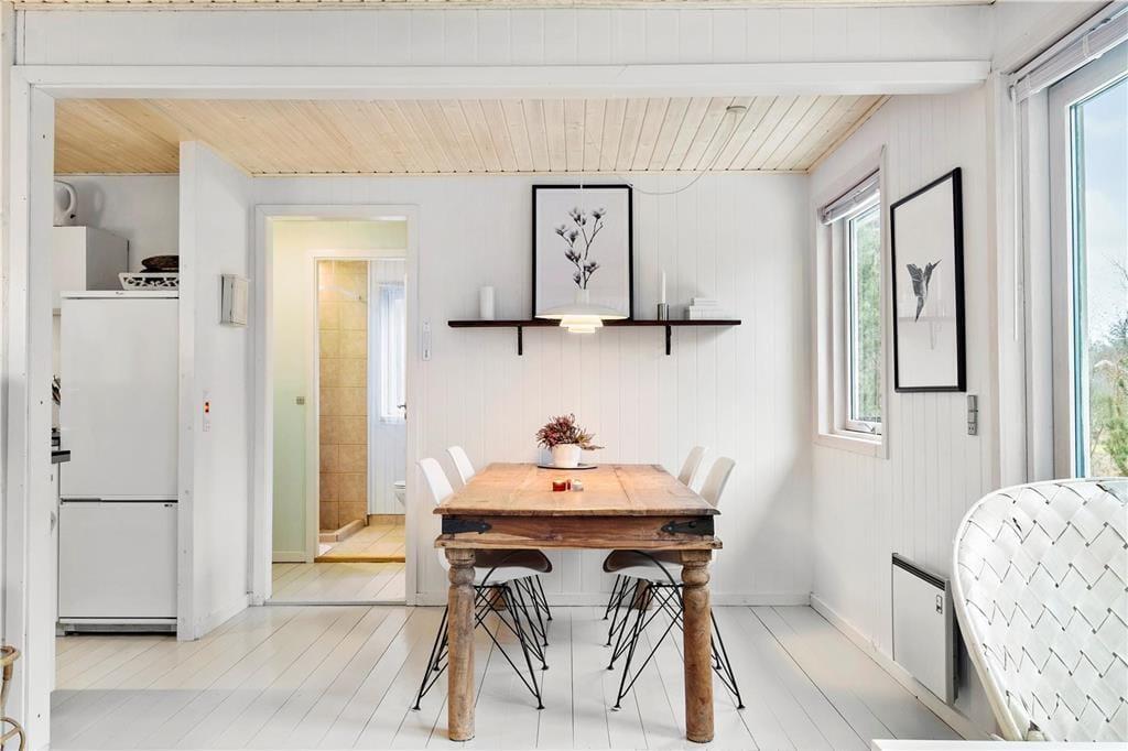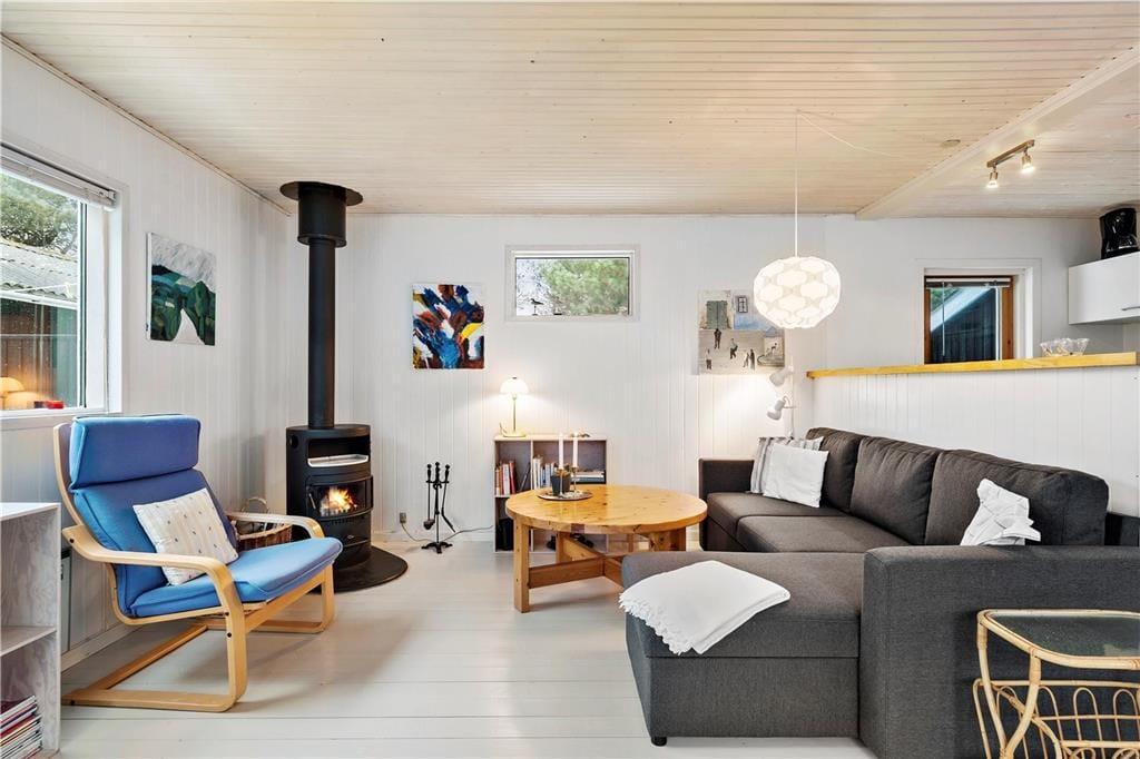 Når I træder indenfor i sommerhuset, bliver I mødt af et åbent og lyst køkken-alrum, hvor I kan samles og tilberede feriens måltider. Den hyggelige stue med brændeovn skaber en varm og indbydende stemning, perfekt til de køligere aftener, hvor I kan slappe af med et godt brætspil eller en film. Sommerhuset emmer af en særlig feriefornemmelse, hvor alle kan finde deres egen lille hyggekrog. Den åbne planløsning gør, at alle kan være sammen, samtidig med at man stadig har mulighed for at trække sig tilbage og nyde et øjebliks ro.