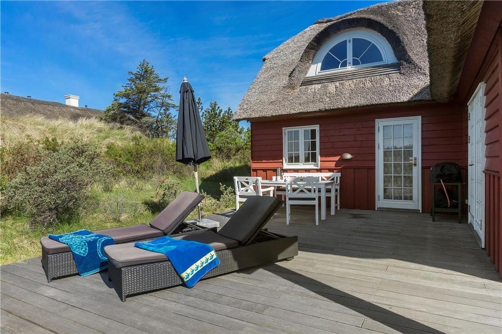 Dette smukke stråtækte sommerhus er ideelt for dem, der søger både stil og komfort på deres ferie. Med en stor udendørs spa og flere dejlige terrasser er der mulighed for at slappe af og nyde omgivelserne. Husets rummelige indretning og de store vinduespartier giver en fantastisk udsigt over havet og den omkringliggende natur. Her er både plads til hele familien og alle de oplevelser, I kan ønske jer – et perfekt valg til både afslapning og eventyr.