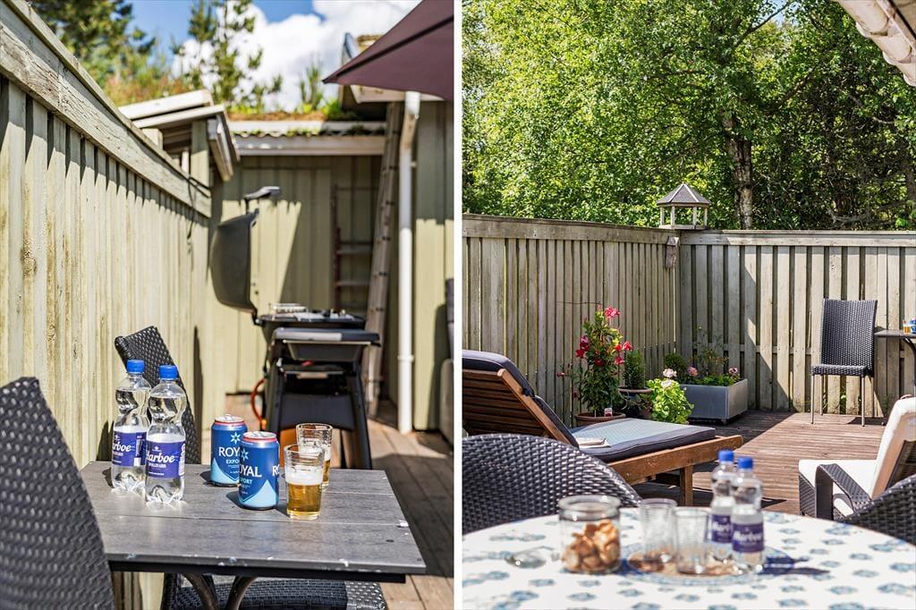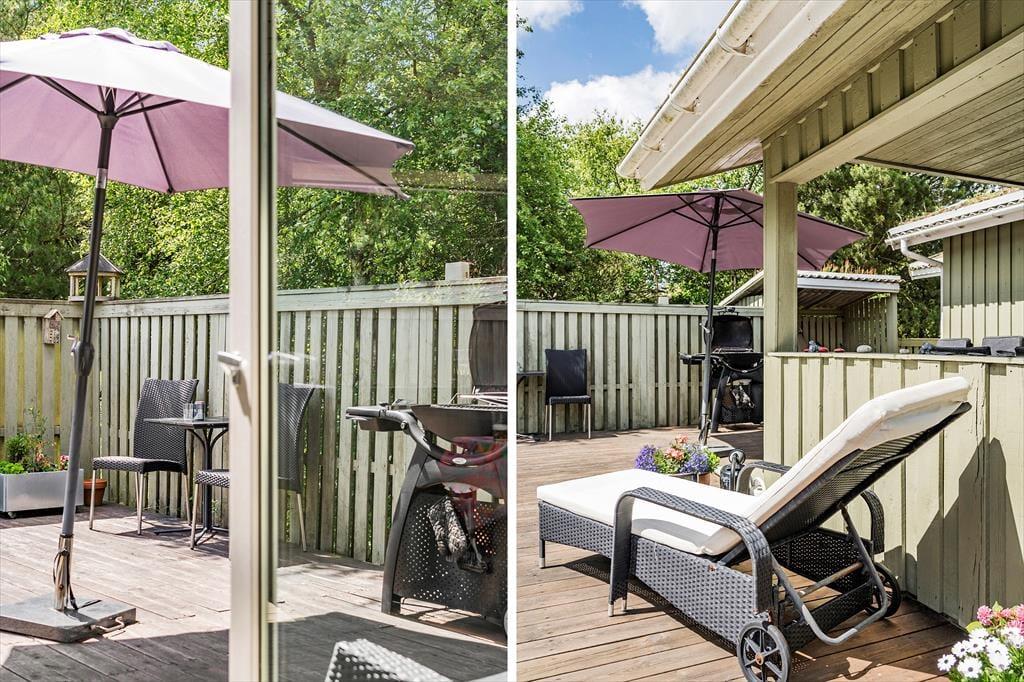 Når I træder udenfor, mødes I af en dejlig og ugeneret terrasse, hvor solen kan nydes i fred og ro. Denne terrasse giver jer muligheden for at nyde alle måltider under åben himmel og samtidig være omkranset af den smukke natur. Omkring huset finder I en dejlig have, hvor børn kan lege, og voksne kan finde ro i havestolen. Den afslappede atmosfære på terrassen gør det til et perfekt sted at slappe af med en god bog, en kaffe eller et glas vin, mens I lytter til fuglesangen og nyder den friske luft.