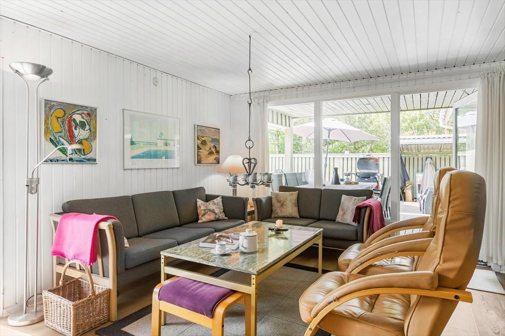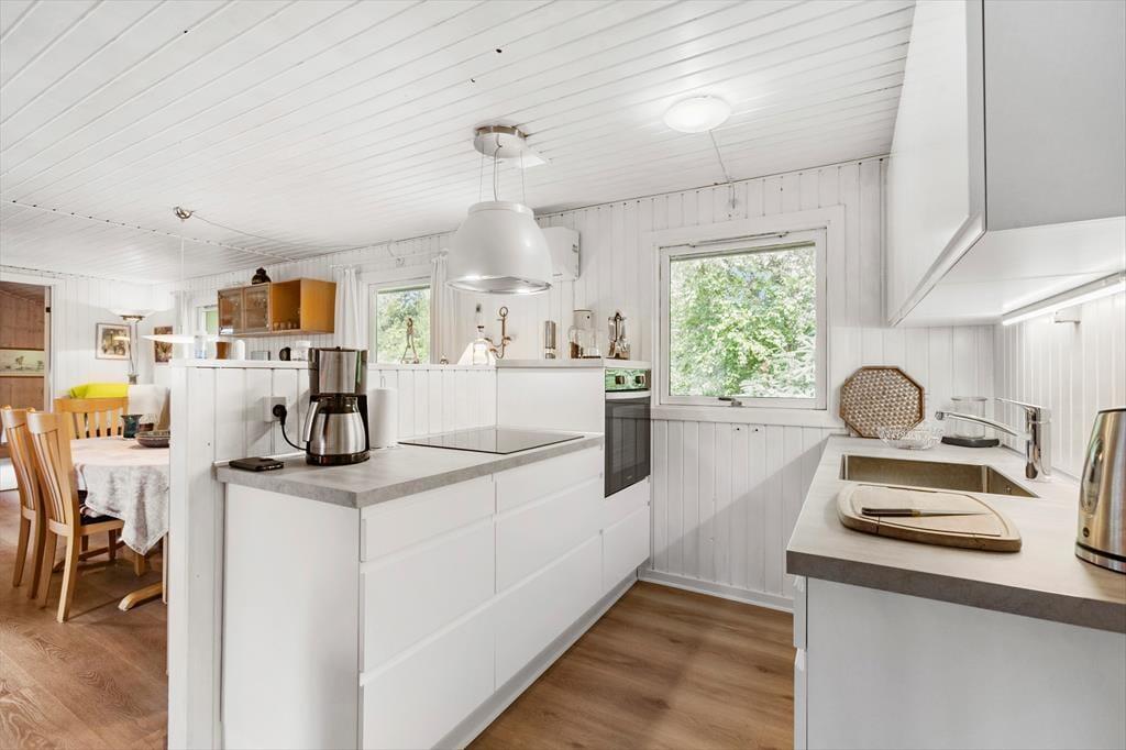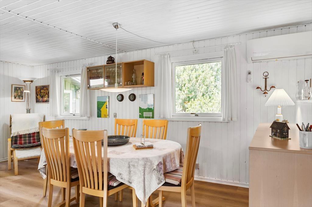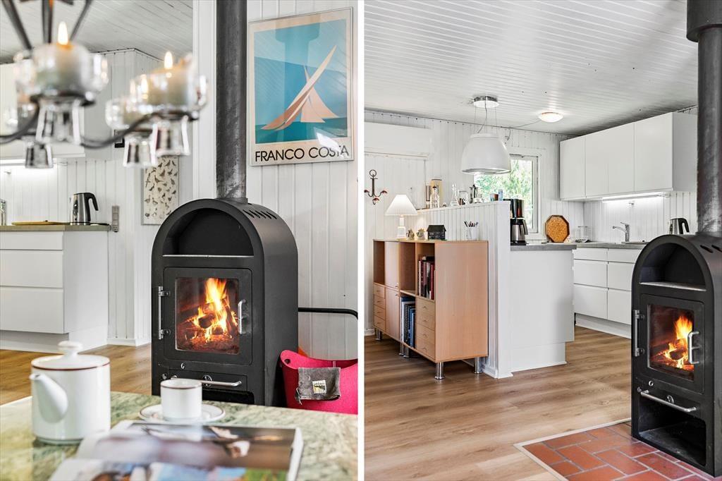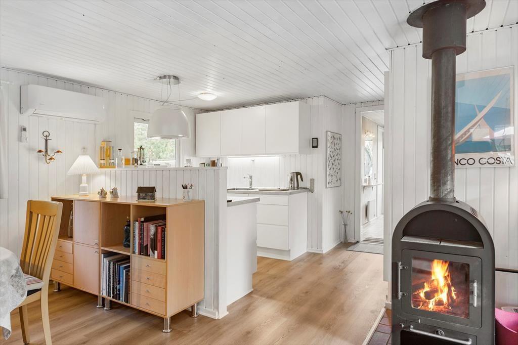 Træd indenfor i dette hyggelige sommerhus, hvor lyse farver og varme trædetaljer giver en hjemlig atmosfære. Stuen er rummelig og indbydende med store vinduer, der lader naturens lys strømme ind, mens den knitrende brændeovn skaber en hyggelig stemning på de køligere aftener. Den åbne planløsning giver plads til, at hele familien kan samles til hygge eller fælles aktiviteter. Her er der rig mulighed for afslapning på de komfortable møbler, og når det er tid til at kokkerere, står det veludstyrede køkken klar til at blive taget i brug. Det dejlige badeværelse med gulvvarme gør, at I kan nyde varme og komfort hele året rundt.
