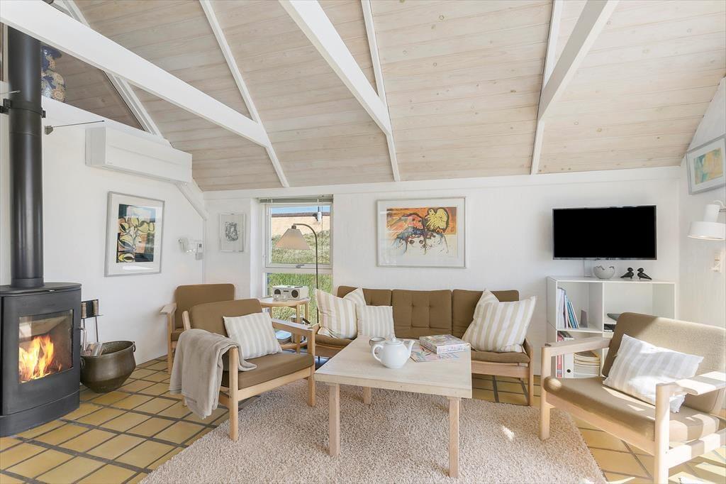 Dette charmerende sommerhus med stråtag byder på en rolig og hyggelig atmosfære, hvor du kan tilbringe afslappende feriedage med familien eller vennerne. Den lyse stue, hvor brændeovnen knitrer blidt, giver dig en skøn udsigt til de naturskønne omgivelser, og de høje lofter og det dejlige lysindfald gør huset ekstra indbydende. Beliggenheden er perfekt – kun en kort gåtur fra stranden, og nær Blokhus, hvor du kan opleve både natur og lokale fornøjelser. Dette hus er et ideelt valg til den ferie, hvor du ønsker ro, men samtidig vil være tæt på alt, hvad området har at byde på.