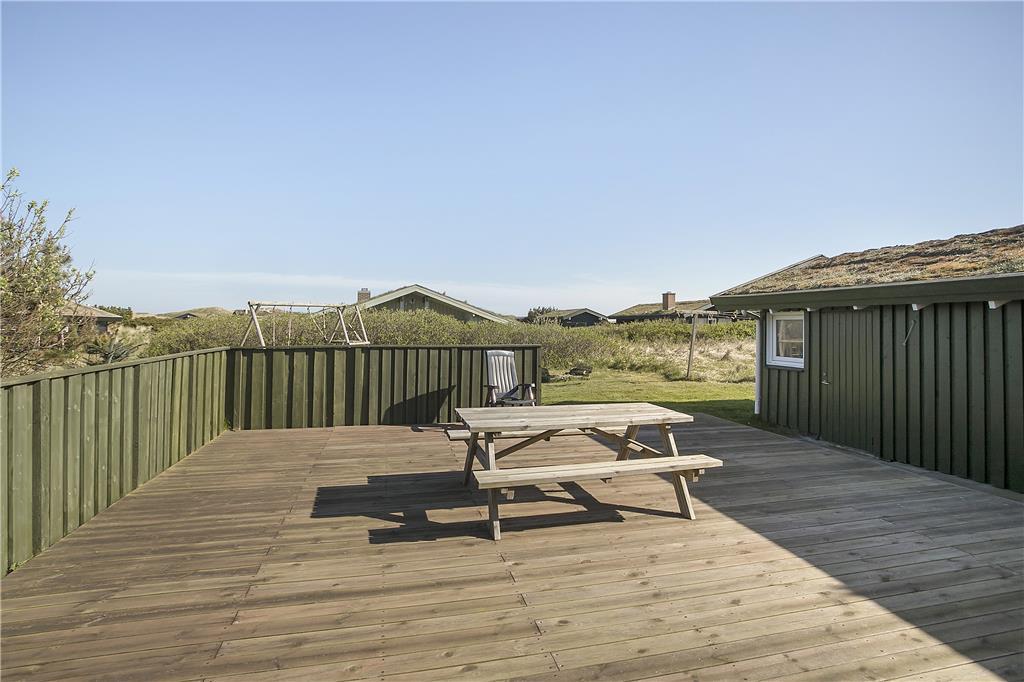 Udendørs er der masser af muligheder for at nyde den friske luft og den naturskønne beliggenhed. Den store terrasse omkring huset er ideel til både afslapning og samvær. Du kan nyde solen i en god havestol, mens du tager en pause fra ferieaktiviteterne, eller samles med familien til en middag under åben himmel. Der er masser af plads til at nyde den friske luft, og den lukkede gårdhave giver også mulighed for privatliv og ro. Uanset om du ønsker at solbade, læse en bog eller nyde en god middag, er denne terrasse det perfekte sted til at tilbringe timer i naturen.
