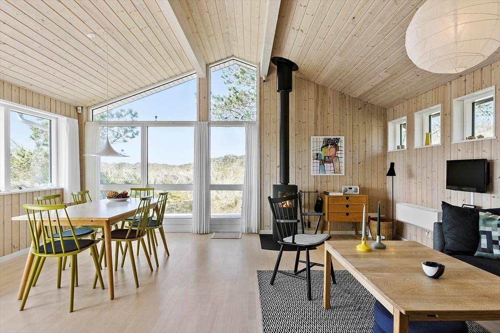 Når du træder indenfor, mødes du af en lys og hyggelig stue med store vinduer, der bringer naturen ind i hjemmet. Her er der god plads til at samles omkring brændeovnen på de kølige aftener, eller til at lade op med en god bog i hænderne. Stuen er rummelig og indbydende, og du kan nemt finde dit yndlingssted – måske lige ved vinduet, hvor du kan følge med i årstidernes skiftende farver udenfor. Der er også plads til at hele familien samles til fælles aktiviteter, så alle kan være med til at skabe hyggelige minder.