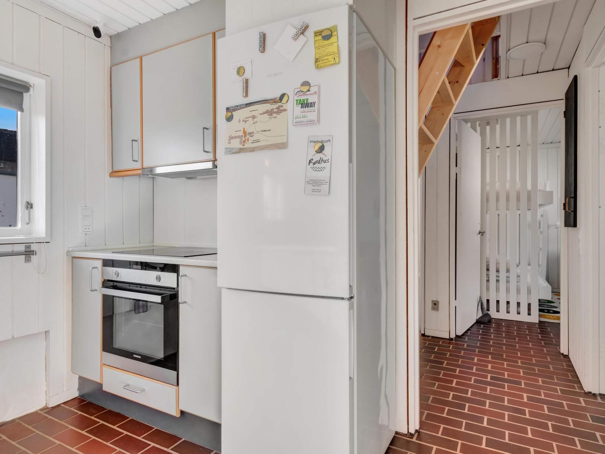 Dette charmerende sommerhus, der ligger i et afsides område af Rødhus, tilbyder et fredeligt og hyggeligt fristed. Når du træder ind, bliver du budt velkommen af en entré, der er perfekt til opbevaring af jakker og sko. Gangen fører til et badeværelse og et alsidigt soveværelse med både køjesenge og en dobbeltseng. En trappe til højre fører op til en rummelig, lys loftsetage med ovenlys, der er ideel til ekstra soveplads. Længere nede ad gangen er der et andet soveværelse med to enkeltsenge.
