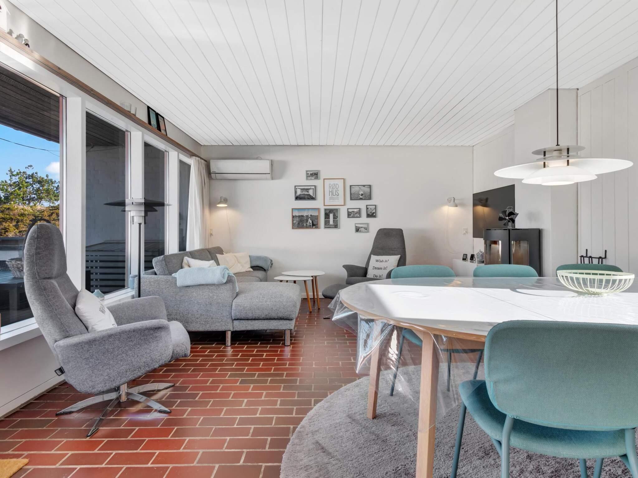 Hjertet af sommerhuset består af et stilfuldt køkken/spiseplads og en hyggelig stue med brændeovn. Store vinduer giver naturligt lys og skaber en varm og indbydende atmosfære. Stuen åbner op til en smuk afskærmet terrasse og have, der er perfekt til afslapning eller til at nyde måltider udendørs i fuldstændig privathed. Ejendommen er røgfri, og ungdomsgrupper er ikke tilladt.