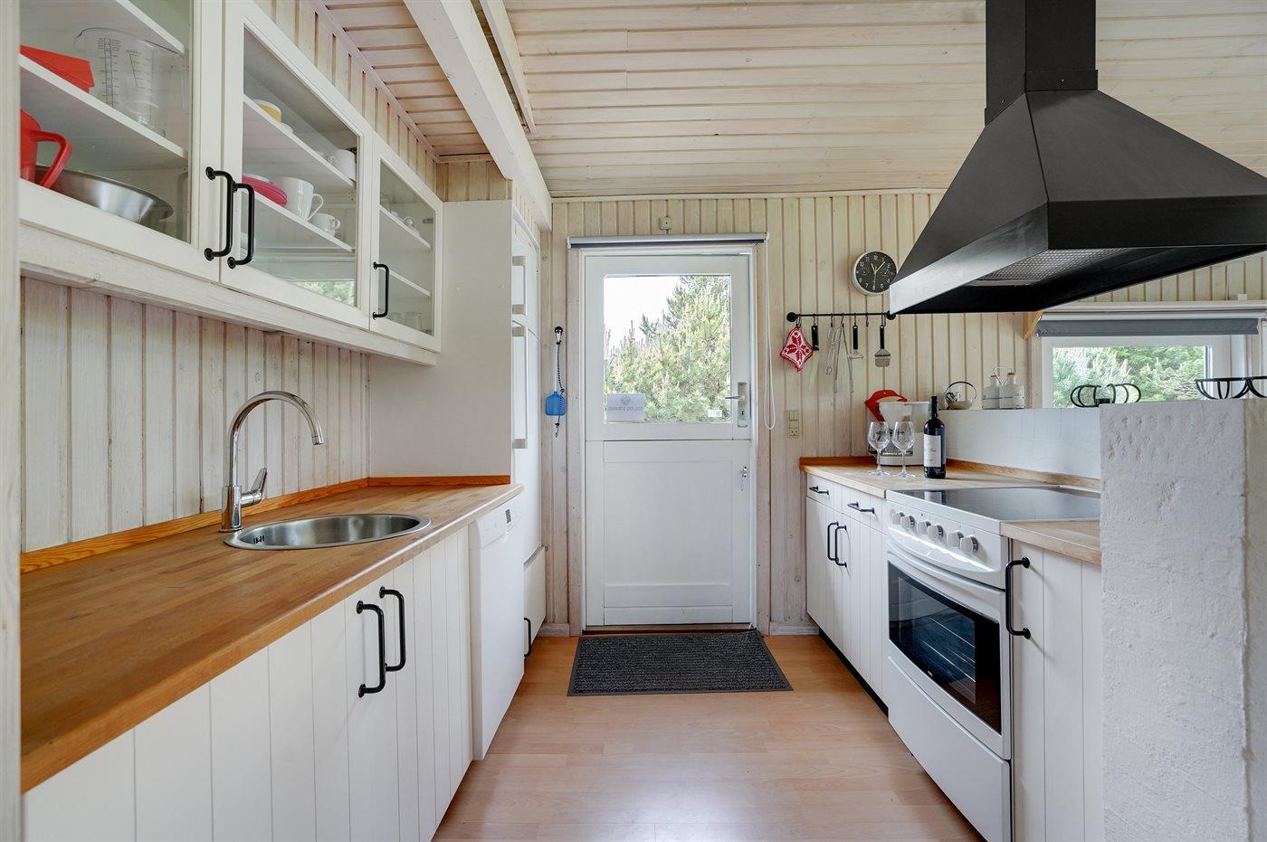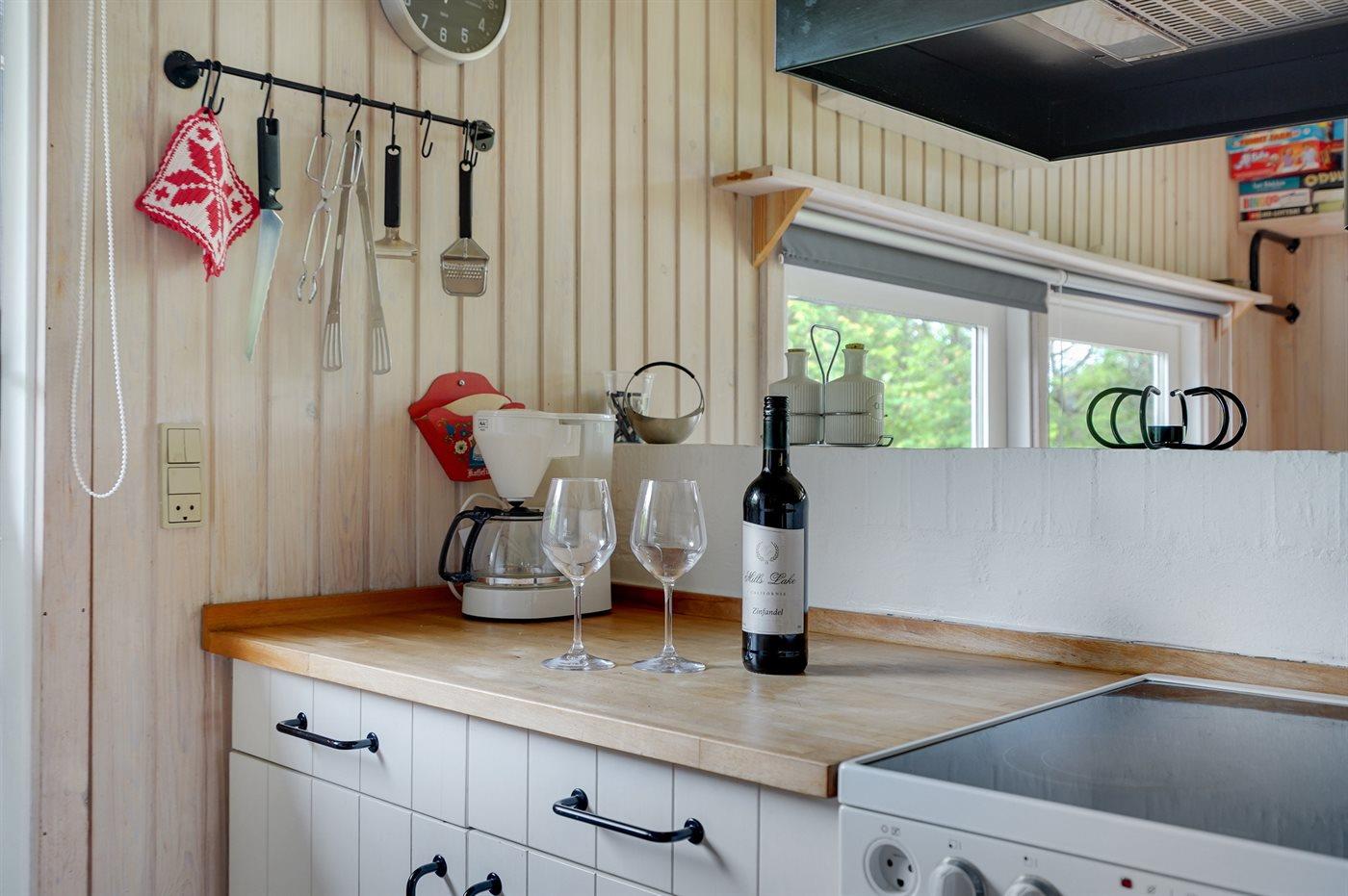Køkkenet er udstyret med 1 køleskab. Der er 4 keramiske kogeplader, bageovn samt opvaskemaskine.