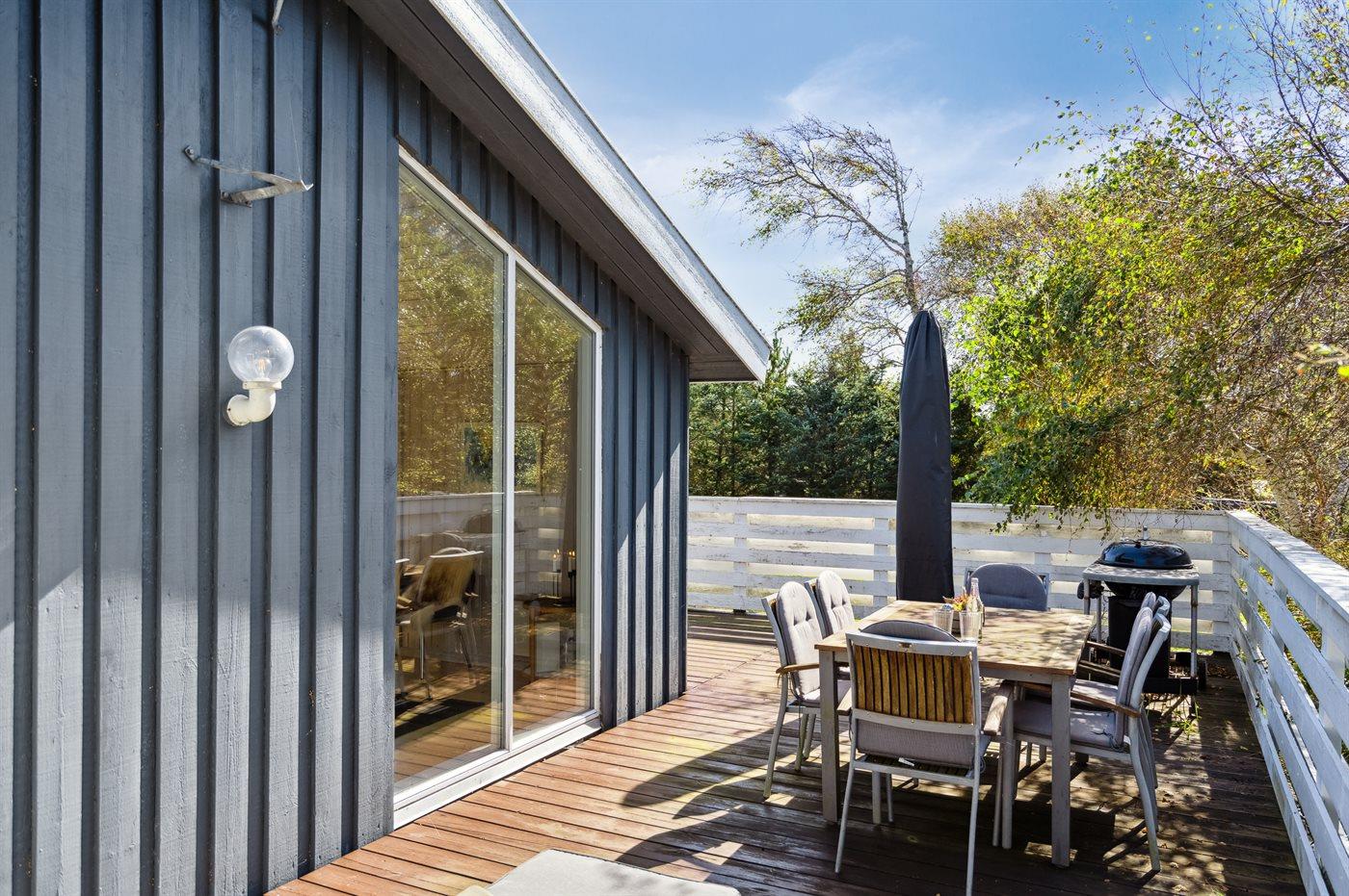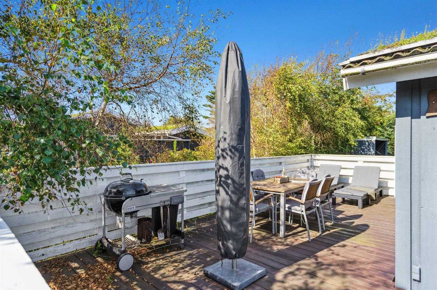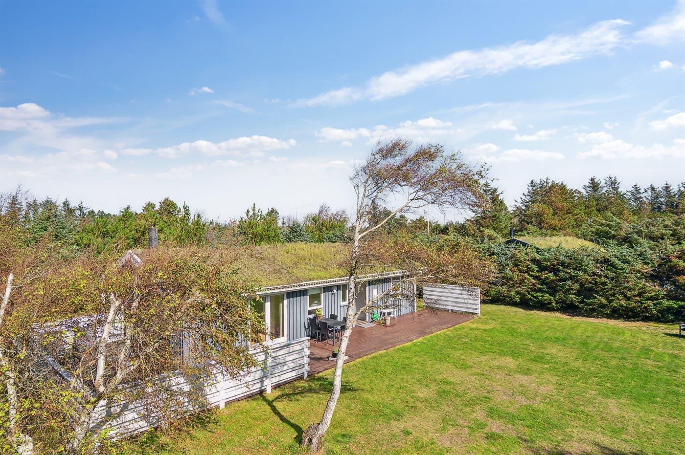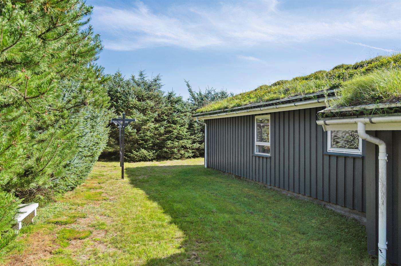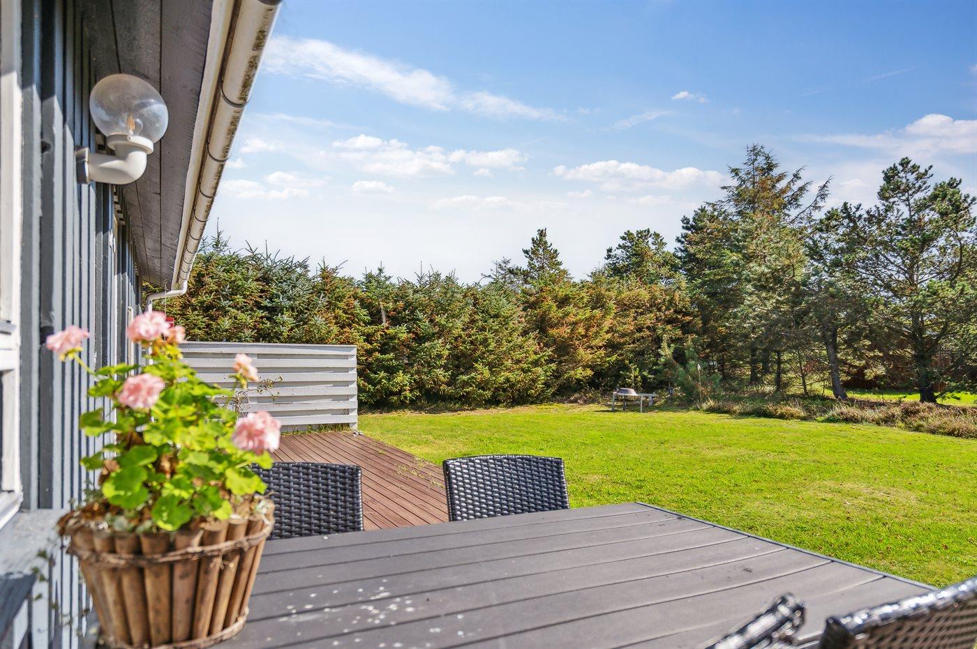 Ferieboligen er beliggende på en 914 m² stor naturgrund. Der er 1200 m til havet. Nærmeste forretning er beliggende i en afstand af 7000 m. Der er en golfbane i en afstand af 5000 m. Til ferieboligen hører 60 m² terrasseareal. Her er gode læforhold samt diverse havemøbler og hængekøje. Grill til rådighed. Parkering ved ferieboligen.