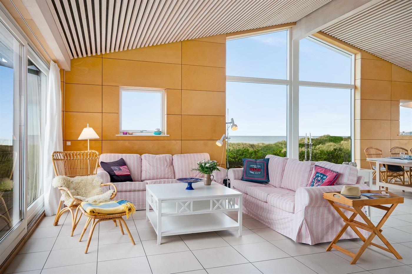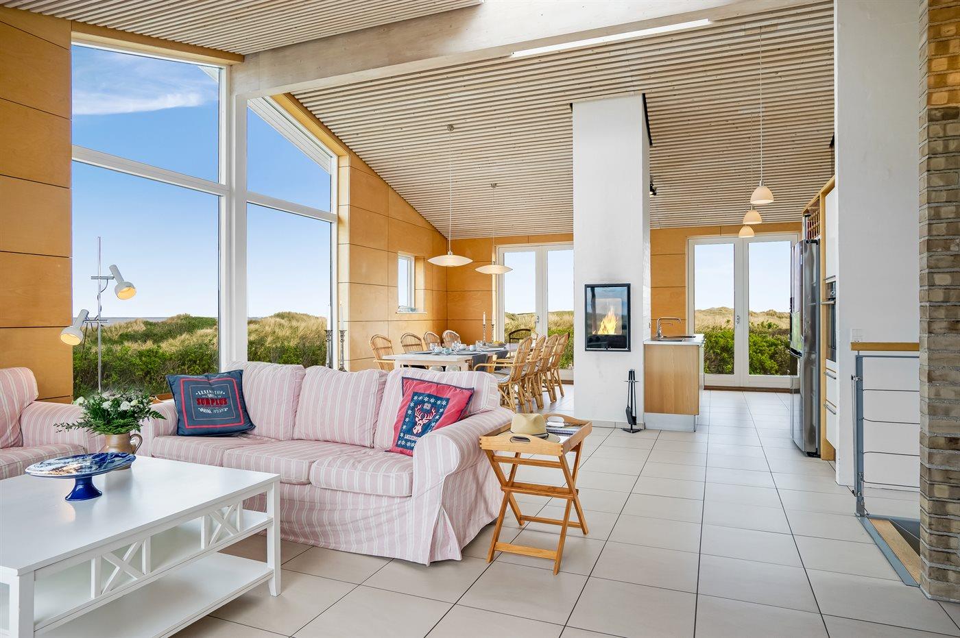 Fantastisk flot sommerhus i 2 etager, renoveret i 2009, beliggende på en stor klitgrund, kun 50 m fra stranden og med en helt enestående panoramaudsigt til Rubjerg Knude i nord og Bulbjerg i syd. Huset er totalrenoveret og fremstår i dag som nyt. Til huset hører et stor terrasseareal med havemøbler - herfra kan I nyde udsigten i fulde drag. Indvendig er der opvarmede klinkegulve. 2 dejlige badeværelser, begge med bruseniche. På husets 1. sal finder I det flotte køkken som bl.a. er udstyret med opvaskemaskine, amerikansk køleskab med isterningmaskine og fryser, varmluftovn samt komfur med keramiske kogeplader. Den smagfuldt indrettede opholdsstue med brændeovn, stereoanlæg med CD-afspiller, DVD-afspiller og TV samt 1 soveværelser med dobbeltseng. I stueetagen findes der stort opholdsstue/aktivitetsrum med brændeovn, bobspil samt flere andre spil. I stueetagen finder I ligeledes 3 soveværelser, alle med dobbeltseng. Af yderligere udstyr kan vaskemaskine, tørretumbler, ekstra køleskab og fryser, barneseng og høj barnestol nævnes. Derudover er der trådløst internet til rådighed. Huset er helårsisoleret og der er installeret et energibesparende varmegenvindingsanlæg. Et fantastisk sommerhus med en hel unik beliggenhed - til en dejlig og afslappende ferie uanset årstiden. Huset ligger ca. 8 km fra 18-hullers golfbane.