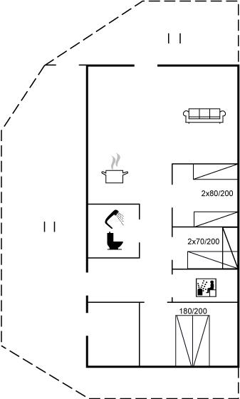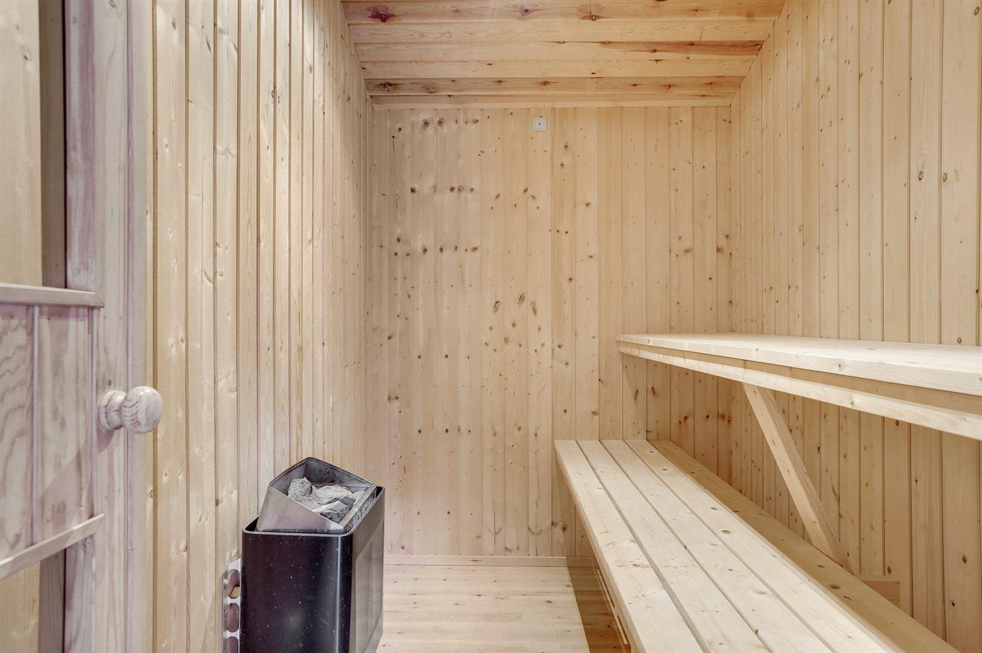 Der er 1 badeværelse med bruser og 1 toilet. I saunaen er der mulighed for afslapning.