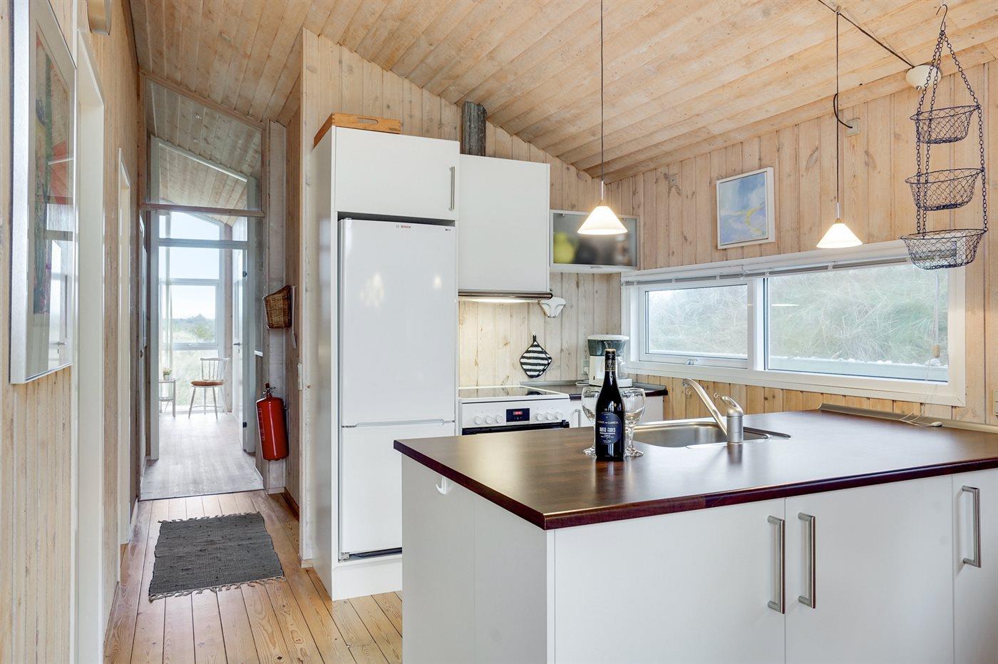 Køkkenet er udstyret med 1 køleskab. Der er 1 keramiske kogeplader, varmluftovn samt opvaskemaskine.