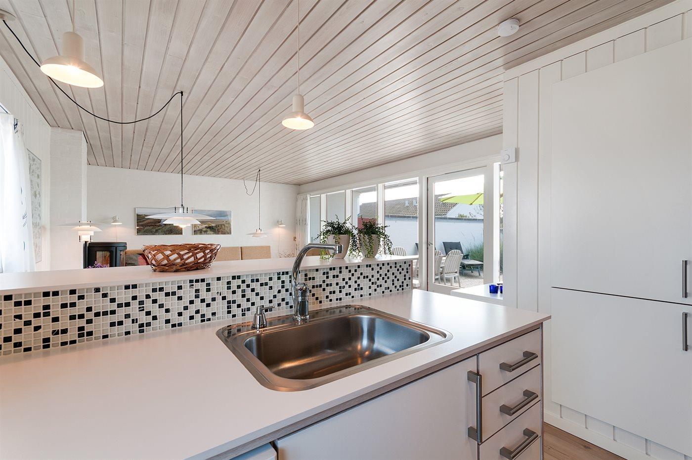 Køkkenet er udstyret med 1 køleskab. Der er 4 induktionskogeplader, varmluftovn, mikrobølgeovn samt opvaskemaskine.