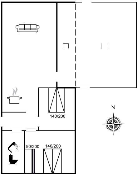 Der er i alt 2 soveværelser. Sovepladserne fordeler sig på: 4 sovepladser i dobbeltsenge. 2 sovepladser i køjeseng.