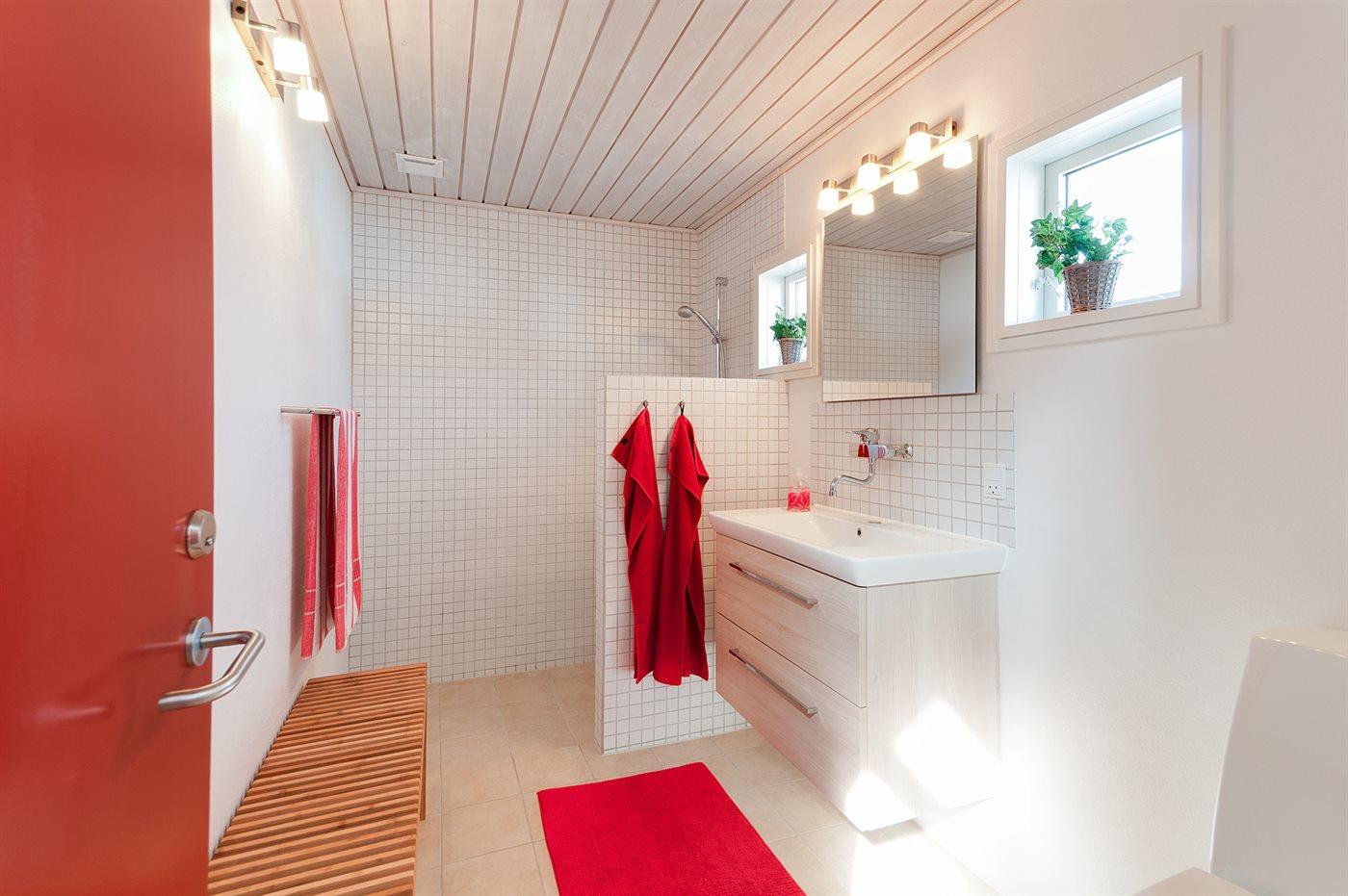 Der er 1 badeværelse med bruseniche og 1 toilet.. Der er gulvvarme på 1 badeværelse.