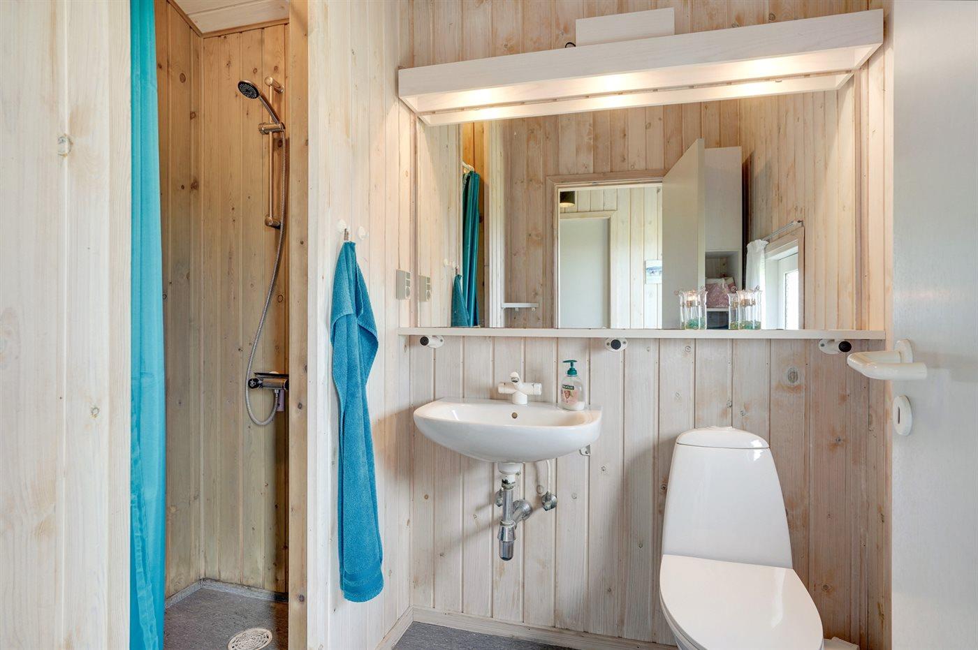 Der er 1 badeværelse med bruseniche og 1 toilet.