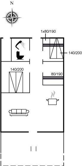 Der er i alt 3 soveværelser. Sovepladserne fordeler sig på: 4 sovepladser i dobbeltsenge. 3 sovepladser i køjesenge. Derudover er der 1 stk. barneseng.