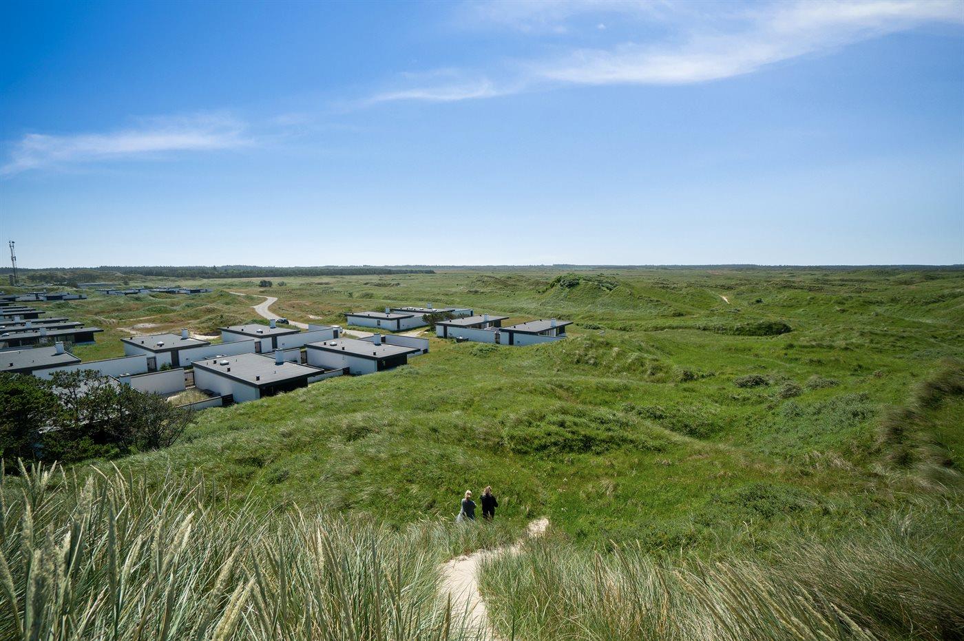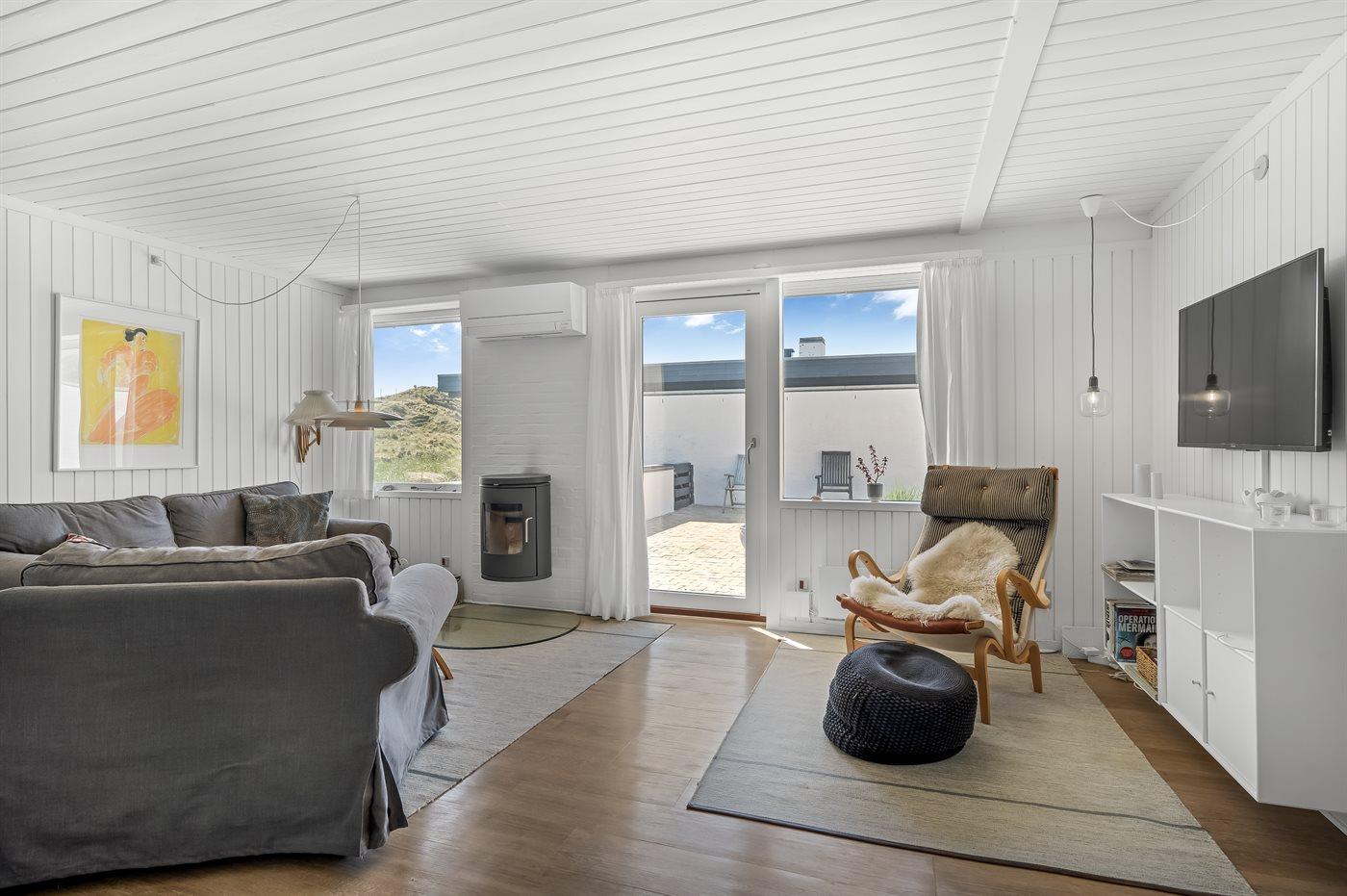 Velindrettet og rummelig feriebolig beliggende i ferieby lige bag klitterne til stranden og Vesterhavet i et naturskønt og kuperet område.