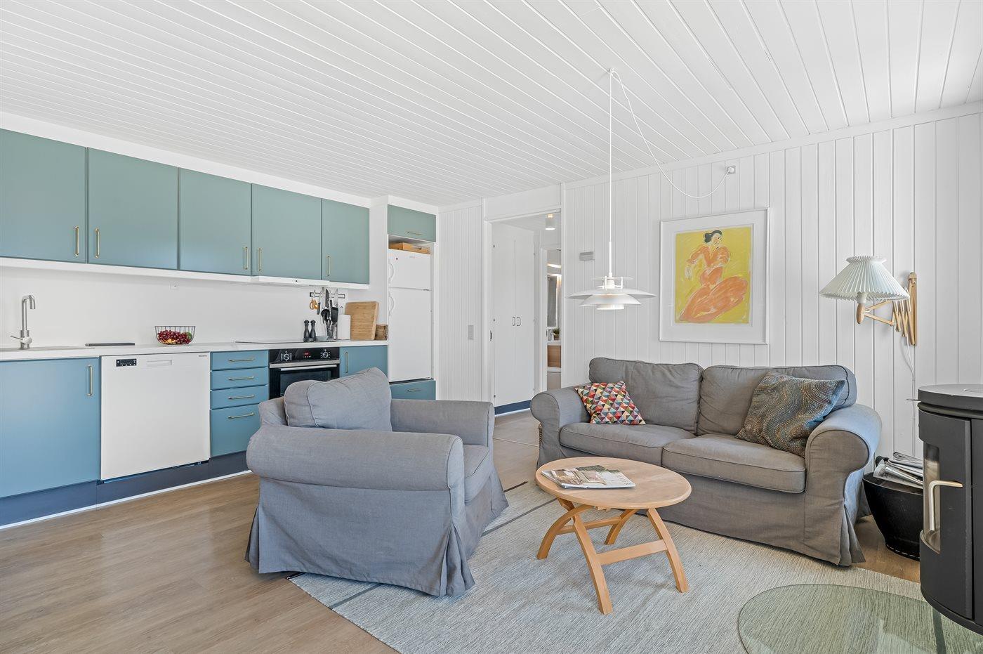 Køkkenet er udstyret med 1 køleskab. Der er 4 keramiske kogeplader, varmluftovn samt opvaskemaskine.