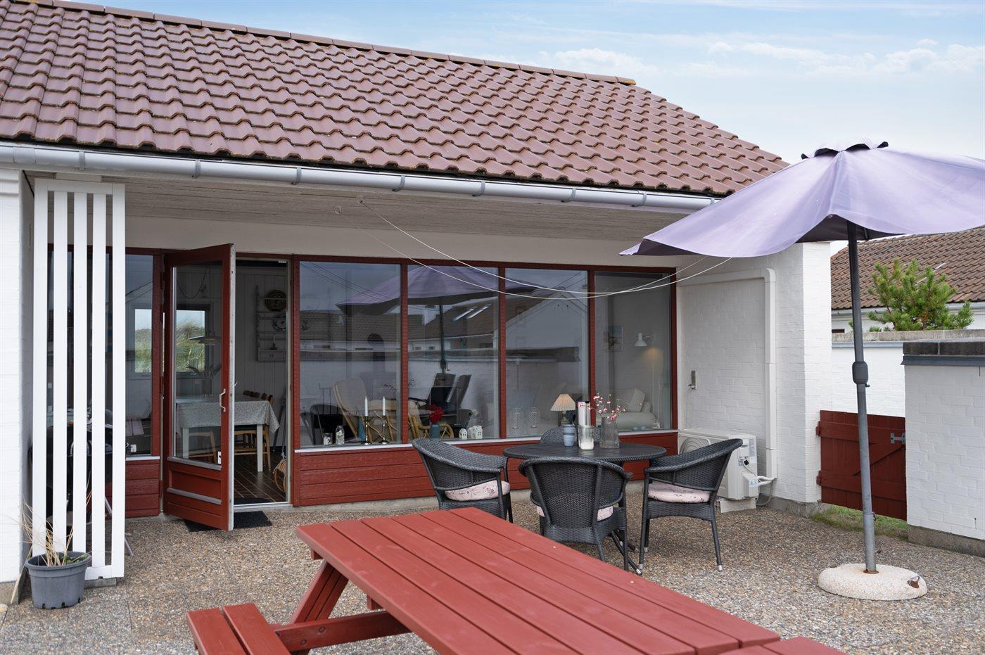 Ferieboligen er beliggende på en 130 m² stor havegrund. Grunden er indhegnet. Der er 900 m til havet. Nærmeste forretning er beliggende i en afstand af 7000 m. Til ferieboligen hører 25 m² terrasseareal. Til ferieboligen hører lukket terrasse og til dels overdækket terrasse. Der ligger en legeplads i en afstand af 10 m. Grill til rådighed. Parkering ved ferieboligen.