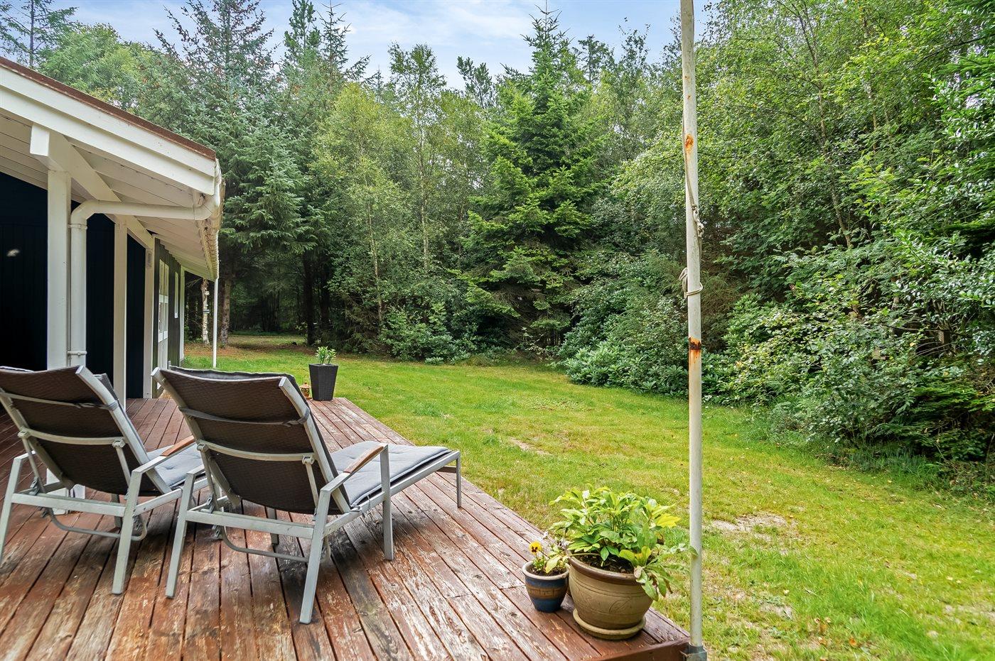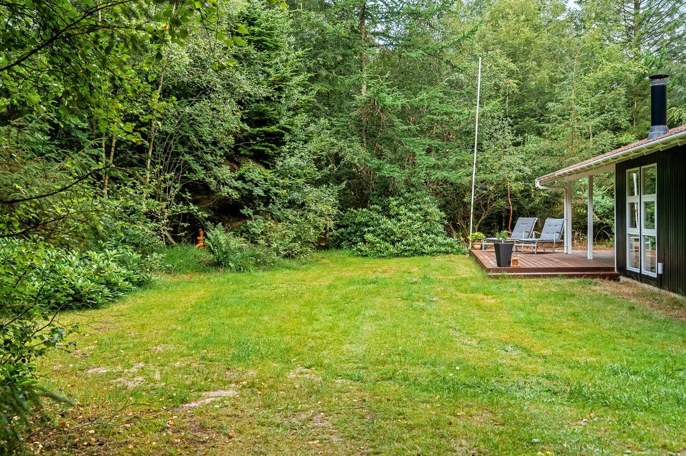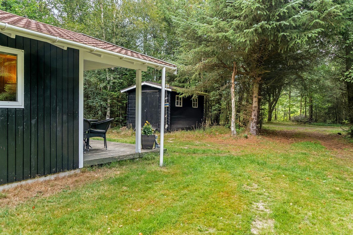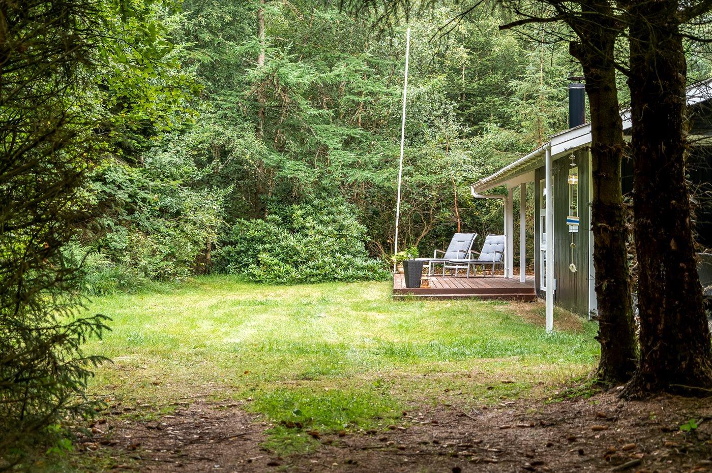 Ferieboligen er beliggende på en 2463 m² stor grund i skov/plantage. Der er 3000 m til havet. Nærmeste forretning er beliggende i en afstand af 6000 m. Til ferieboligen hører åbent terrasseareal. Desuden er der overdækket terrasse. Parkering ved ferieboligen.
