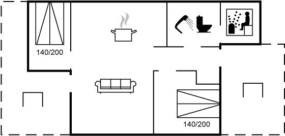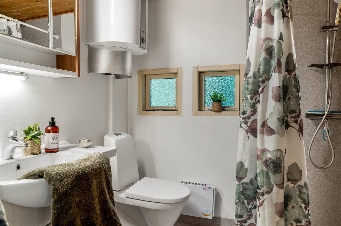 Der er 1 badeværelse med bruseniche og 1 toilet. I saunaen er der mulighed for afslapning.