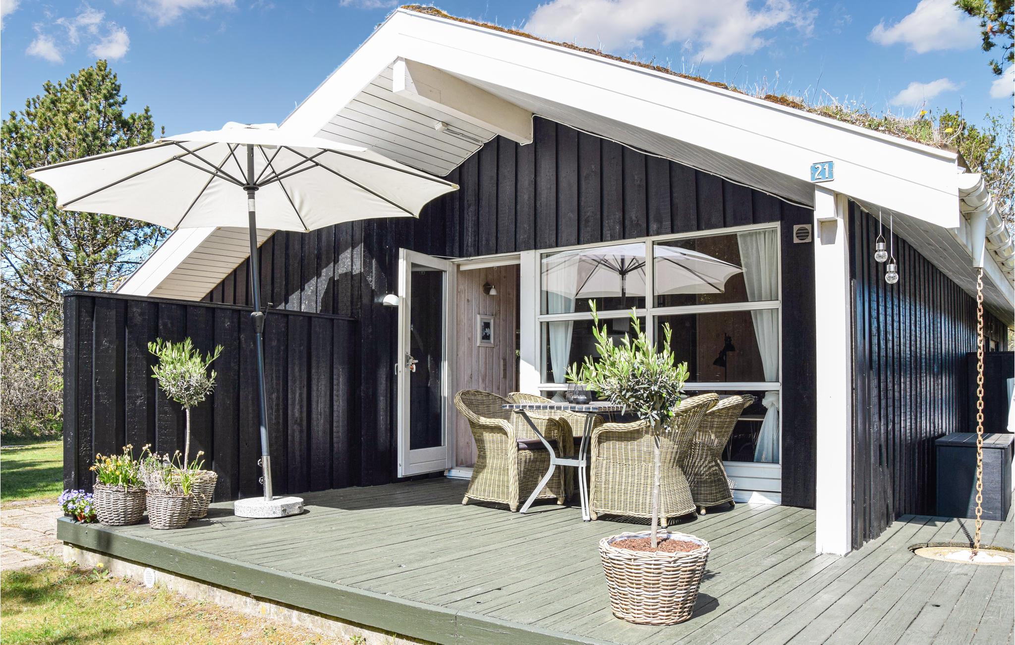 I kommer til at tilbringe en stor del af ferien på træterrassen med overdækket spiseplads, hvor I kan sole jer, læse en god bog eller nyde en kop kaffe eller et godt glas vin. I har også en grill til rådighed, så I kan afslutte en aktiv feriedag med en hyggelig grillaften.