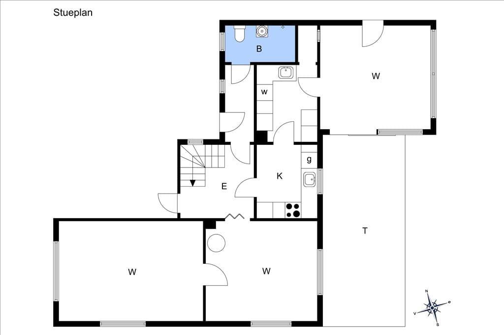 Huset indeholder: Entre, badeværelse med bruseniche, toilet og håndvask.
