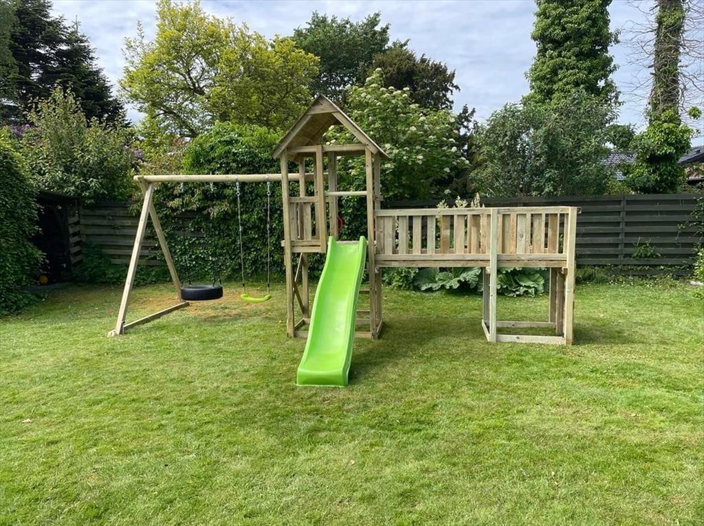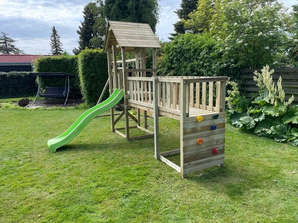 Der er legetårn med gynger og rutsjebane. Der er bålplads i haven.