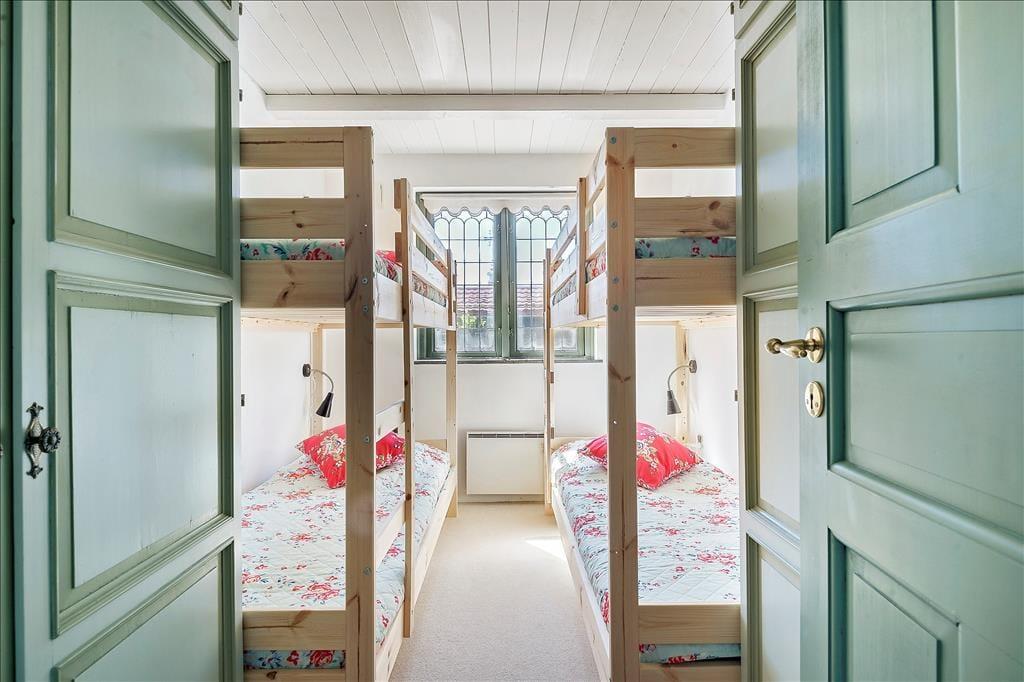 1 værelse med 2 x 2 køjer, og 2 dobbelte skabe.