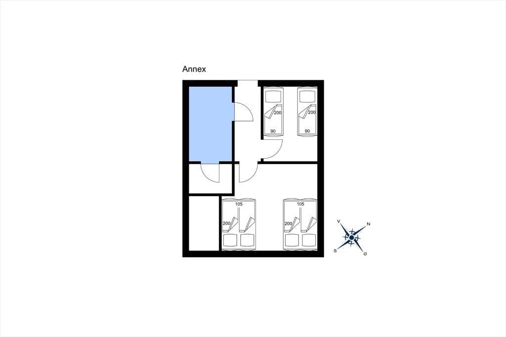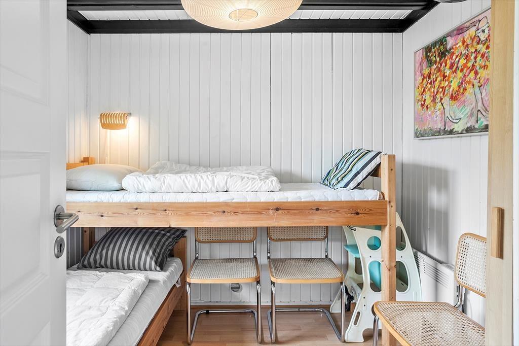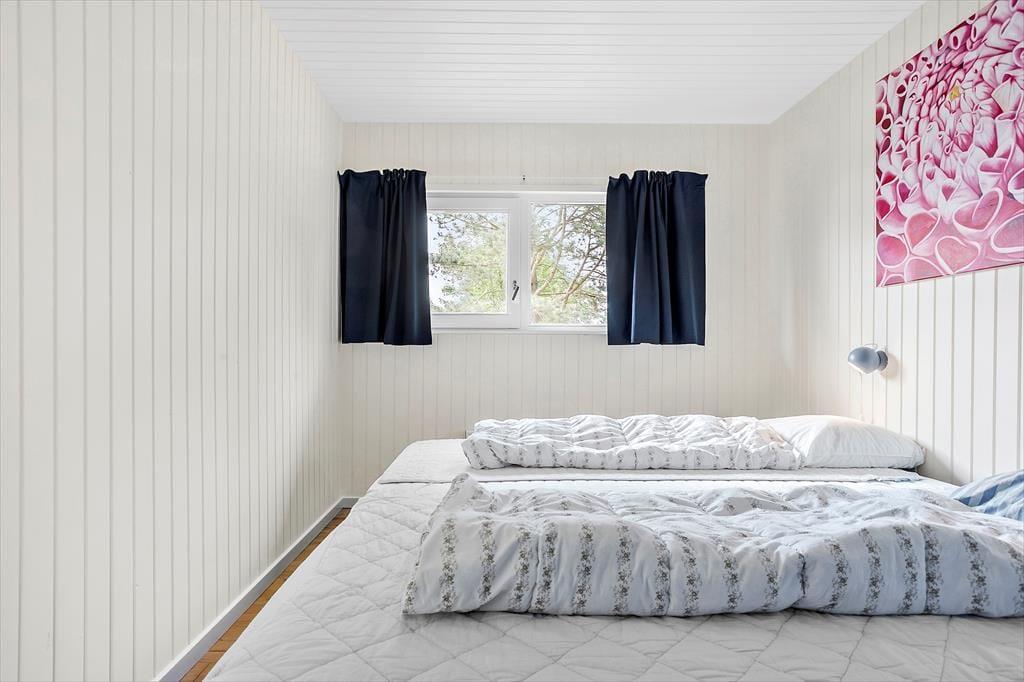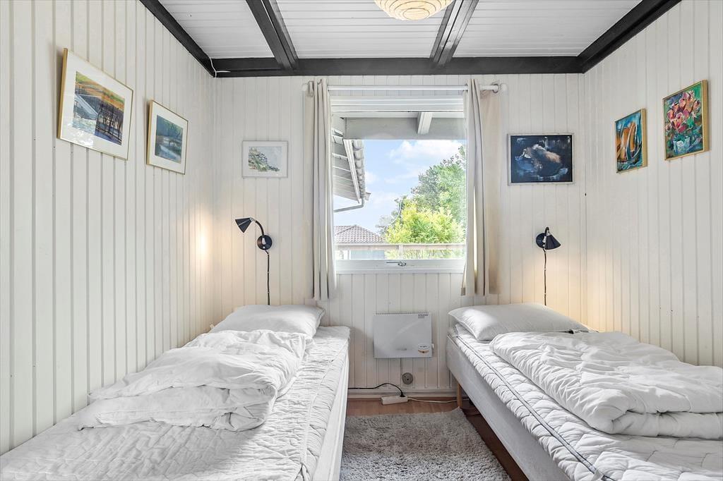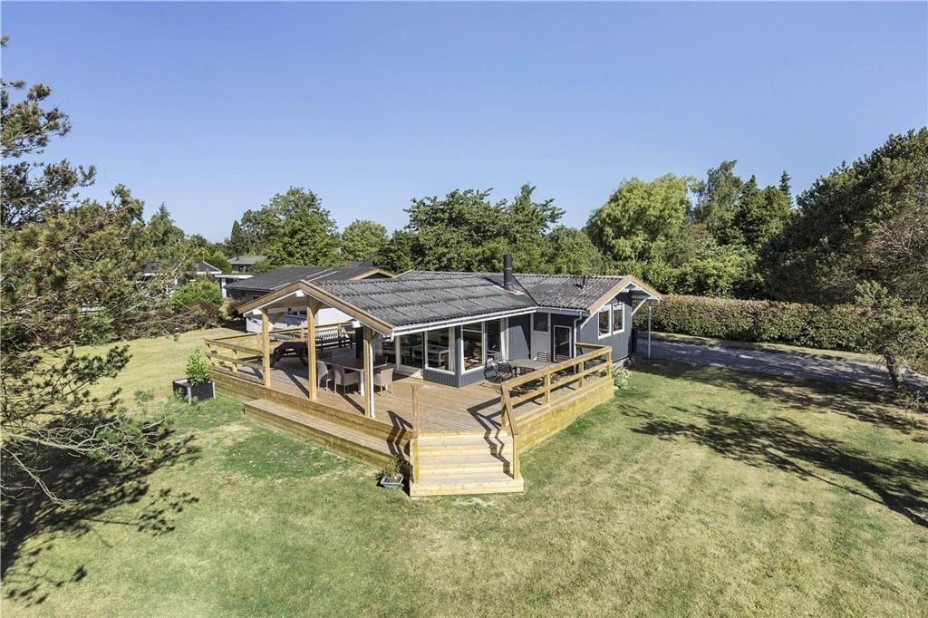 Huset indeholder: entré, fint badeværelse med toilet, håndvask og bruseniche. 2 gode soverum: 2 enkeltsenge + 1 skab, 1 dobbeltseng + 2 skabe. Dejlig lys stue med udgang til den store overdækkede terrasse. Hyggelig spiseplads og dejligt sofahjørne med brændeovn. Køkken med komfur med 4 kogeplader og ovn, emhætte, køleskab, mikroovn, kaffemaskine, elkedel, opvaskemaskine. Fra køkken ligeledes udgang til den dejlige terrassen. Anneks i haven på 40 m² med: badeværelse med sauna og vaskemaskine. I anneks er der 2 fine soverum: 2 enkeltsenge, 1 dobbeltseng. Særdeles velegnet til 2 familier. Der er obligatorisk slutrengøring på huset.