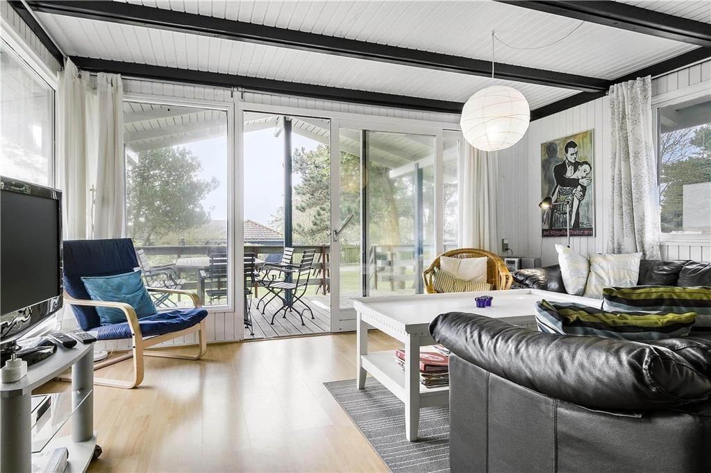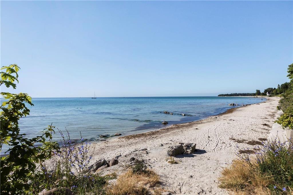 Pragtfuldt beliggende træferiehus – kun 50 meter fra dejlig børnevenlig sandstrand. Fantastisk HAVUDSIGT fra huset.