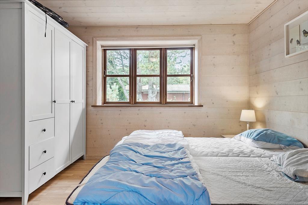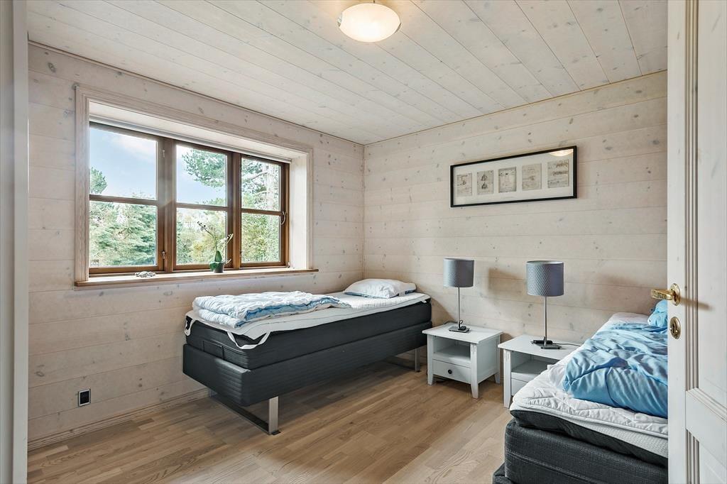 Smukt og førsteklasses luksusferiehus (bjælkehus) i rigtig god kvalitet. Beliggende på en dejlig stor grund. Huset er rummeligt, lyst og komfortabelt. Indeholder: Entre og bryggers. Stort og åbent lækkert køkken. Opholdsstue med udgang til stor delvis overdækket træterrasse. 3 Soverum: 2 enkeltsenge-elevationssenge, 2 enkeltsenge, og 1 dobbeltseng. God trappe fra stuen til hems med 2 madrasser.