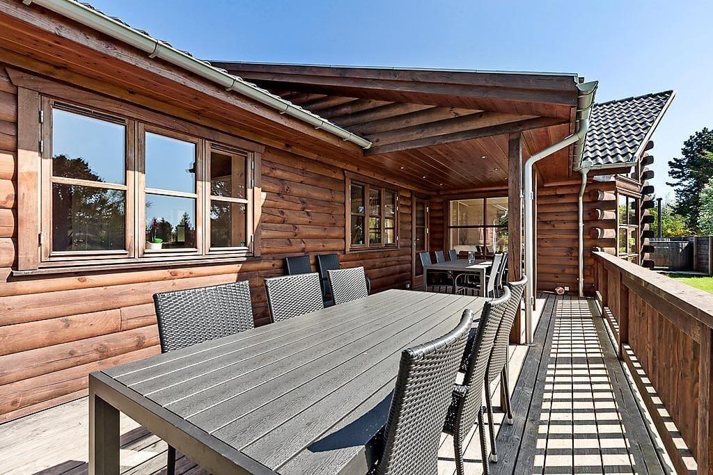 Luksuriøst bjælkehus med vildmarksbad, spabad og stor terrasse nær strand i Rødvig.