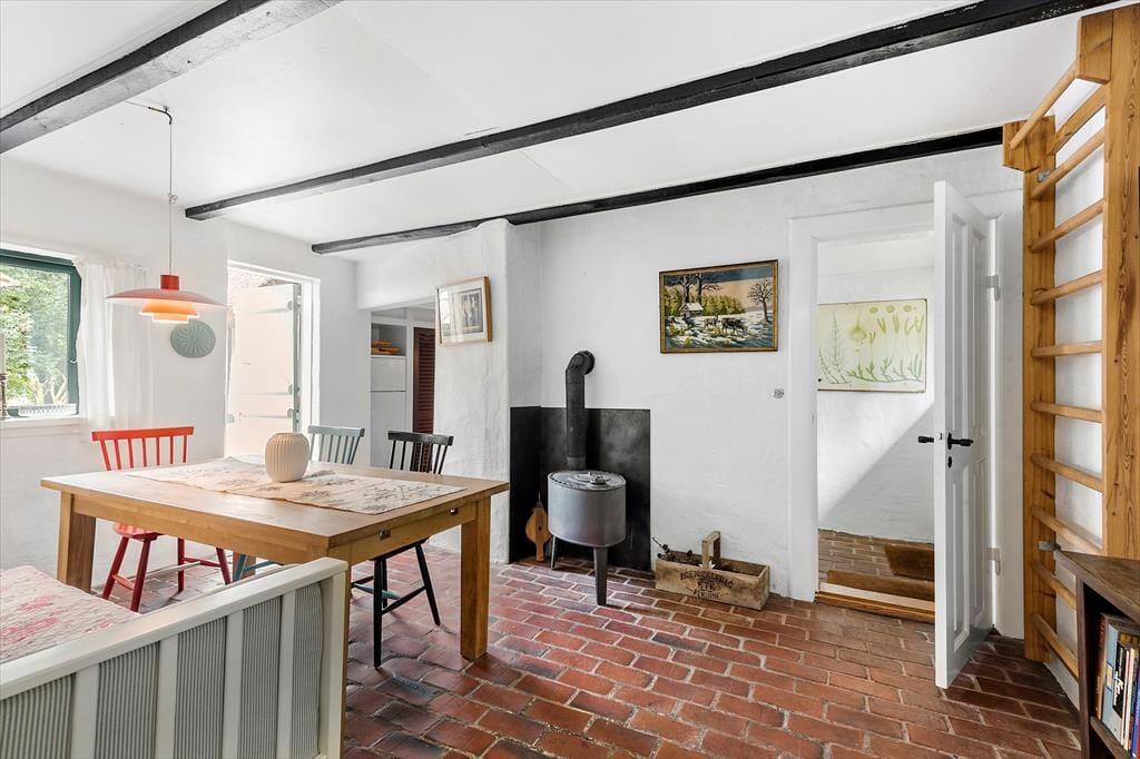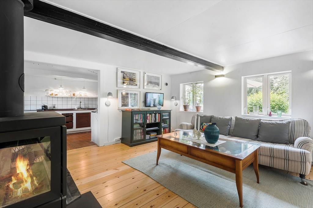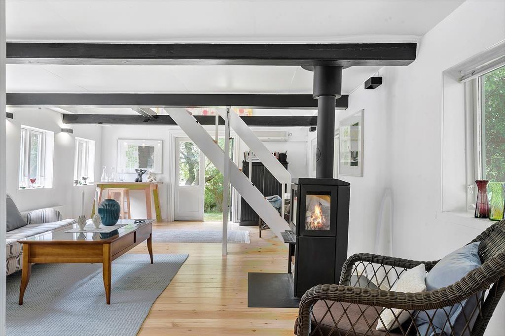 Her finder I to fine soveværelser og en god hems, der er dobbeltseng i alle tre rum. Derudover er her et dejligt landkøkken med åben forbindelse til en stor og lys opholdsstue. Her kan I nyde hinandens selskab og tilberede dagens måltider sammen, imens snakken går om dagens oplevelser og planer for de næste dage. Fra husets spisestue kan I gå direkte ud på en dejlig stor træterrasse. I stuen kan du se tv eller blot lytte til brændeovnens knitren, imens du nyder en kop kaffe og har udsigt til haven. Huset har god plads til alle og der er mulighed for at trække sig tilbage og tage en lur eller læse en god bog.